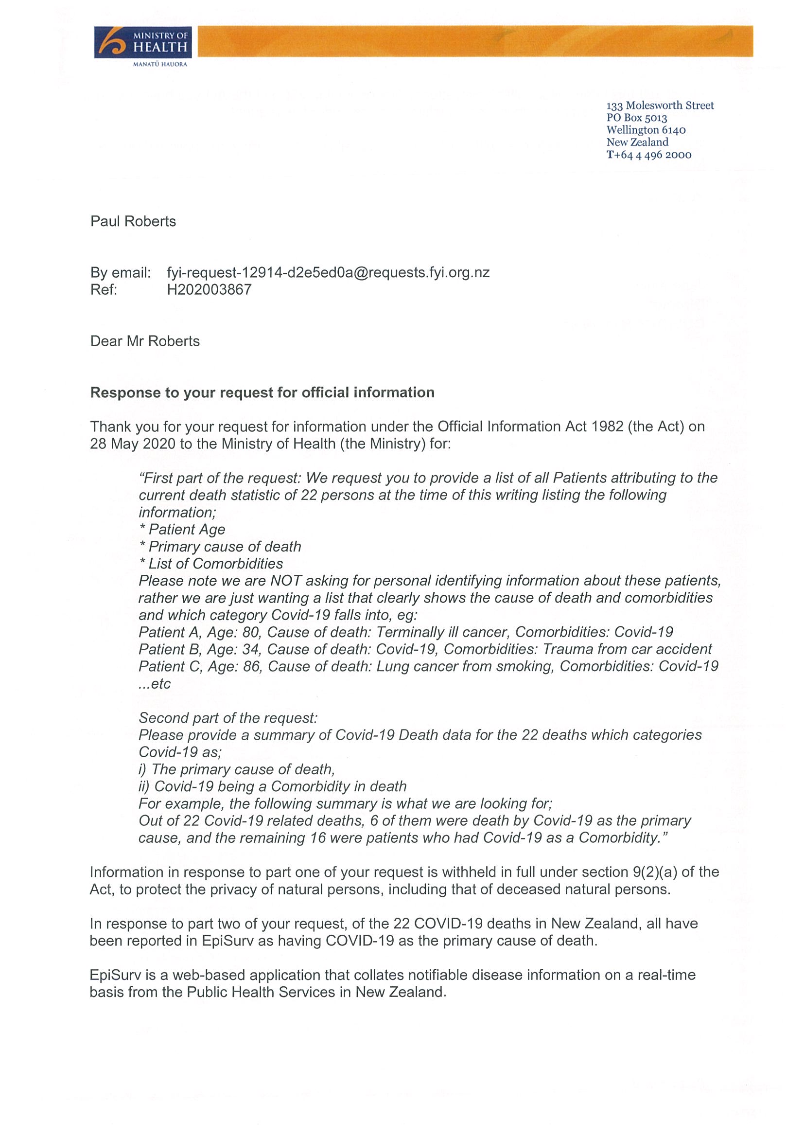 Ministry of Health's reporting of COVID deaths and Comorbidities