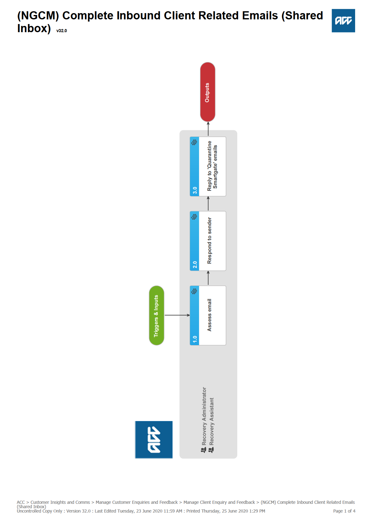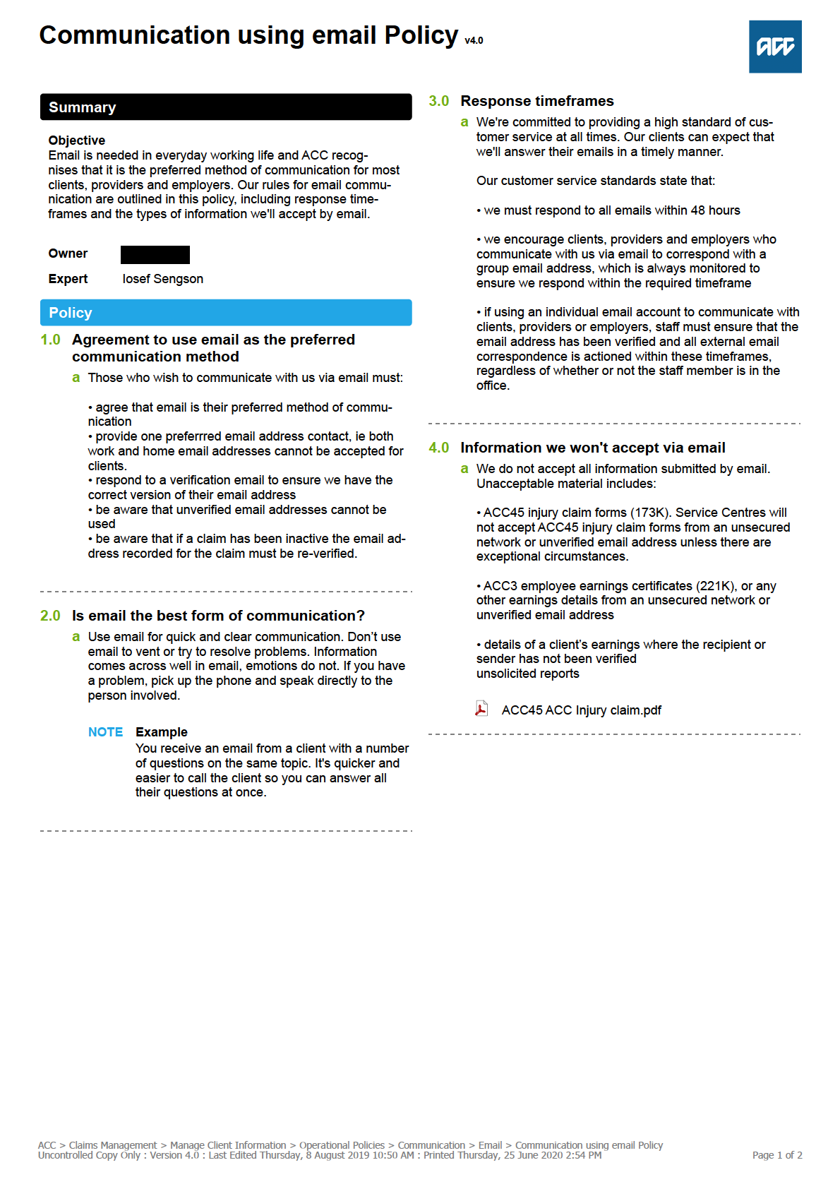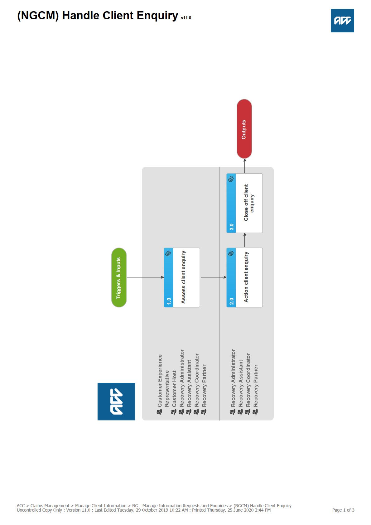Uncontrolled Copy Only : Version 11.0 : Last Edited Tuesday, 29 October 2019 10:22 AM : Printed Thursday, 25 June 2020 2:44 PM