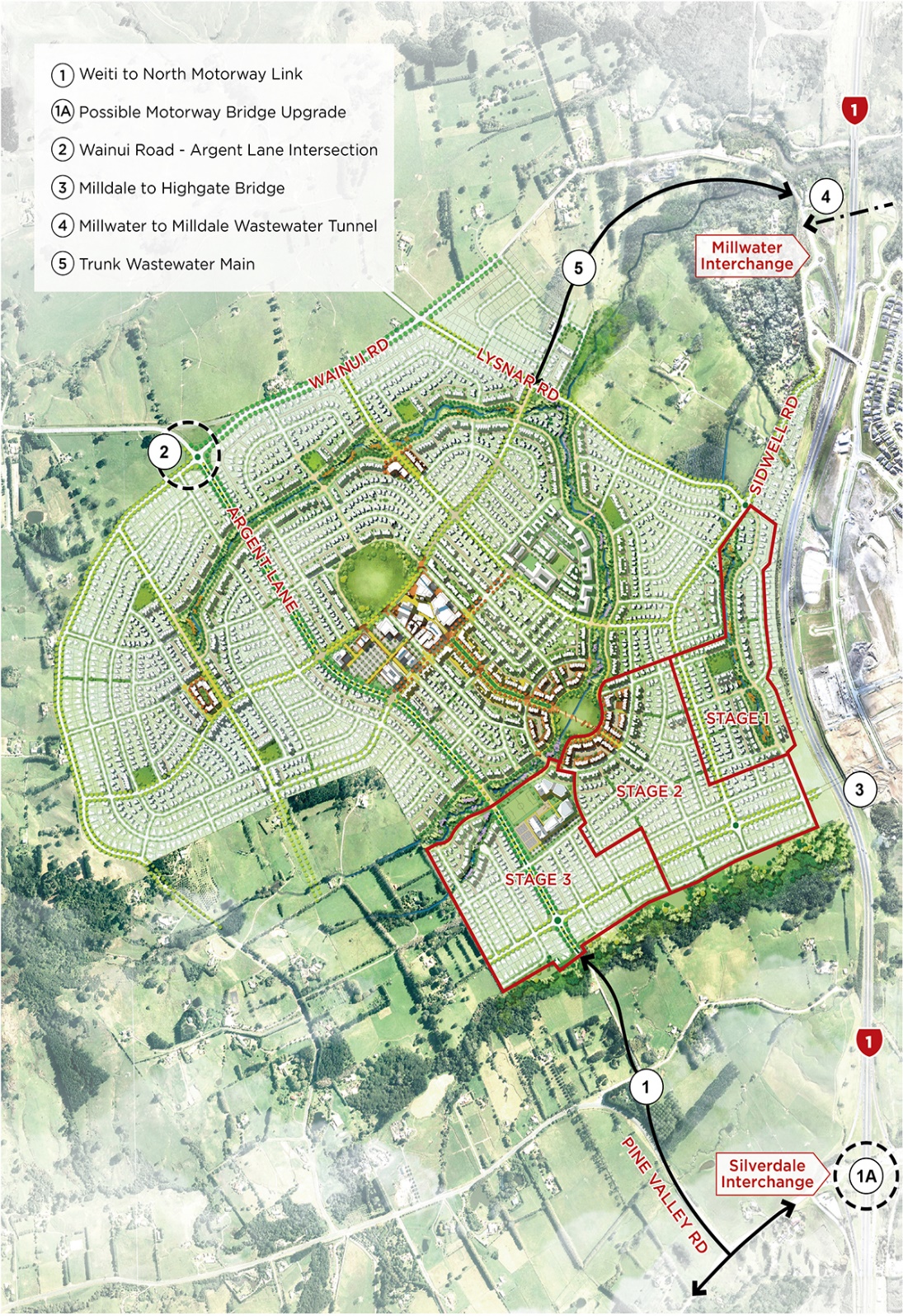 the property required to deliver the proposed bridge crossing the SH1 motorway from Milldale to
