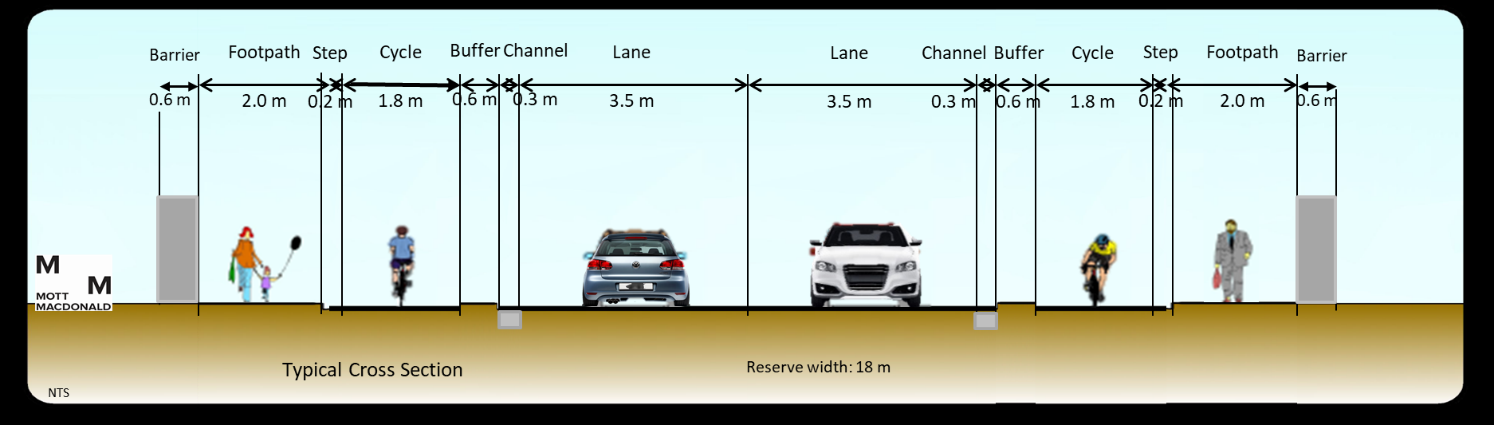 Fig 3: Road cross-section – Wainui Highgate Bridge
