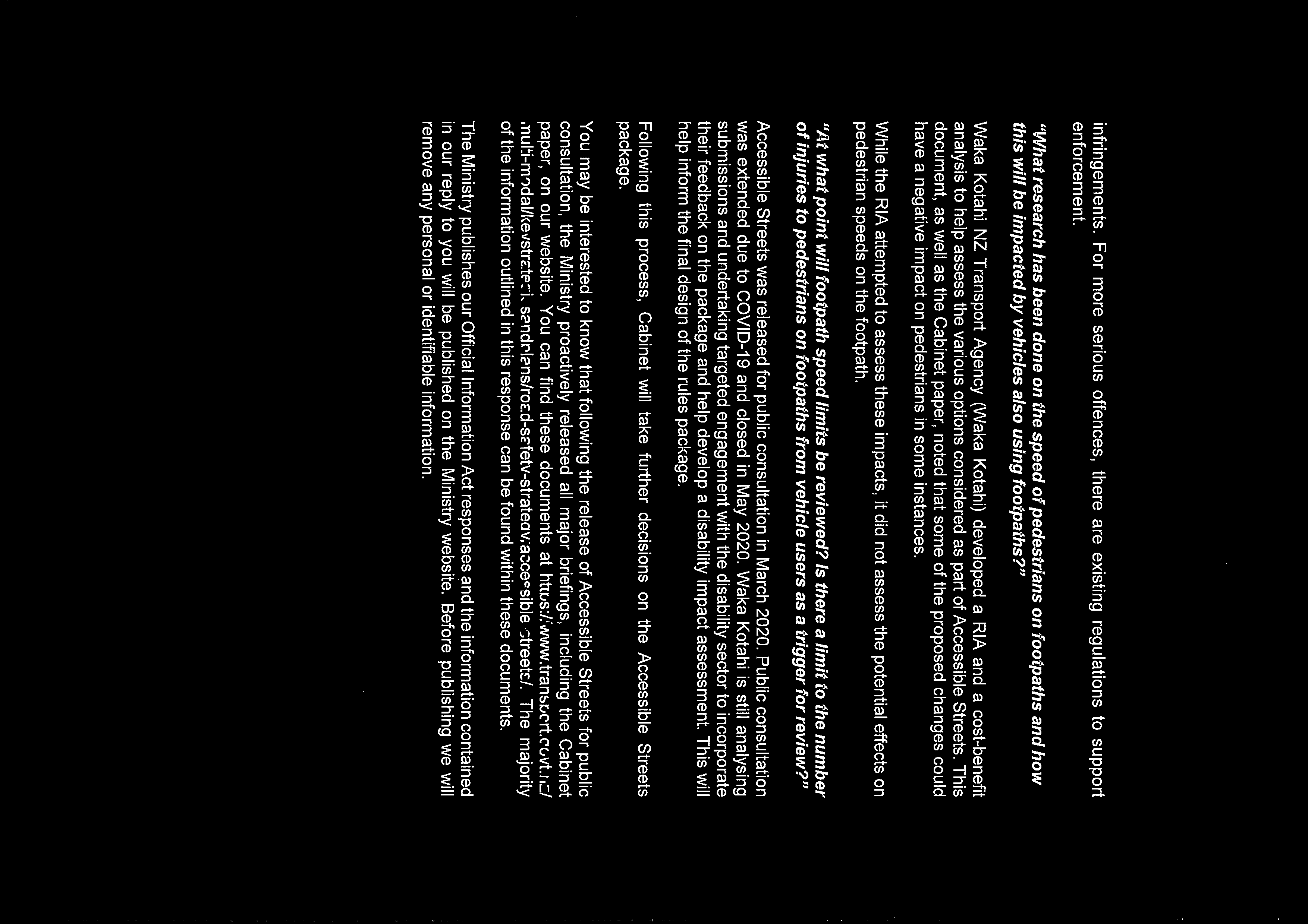 Information on footpath speed limit