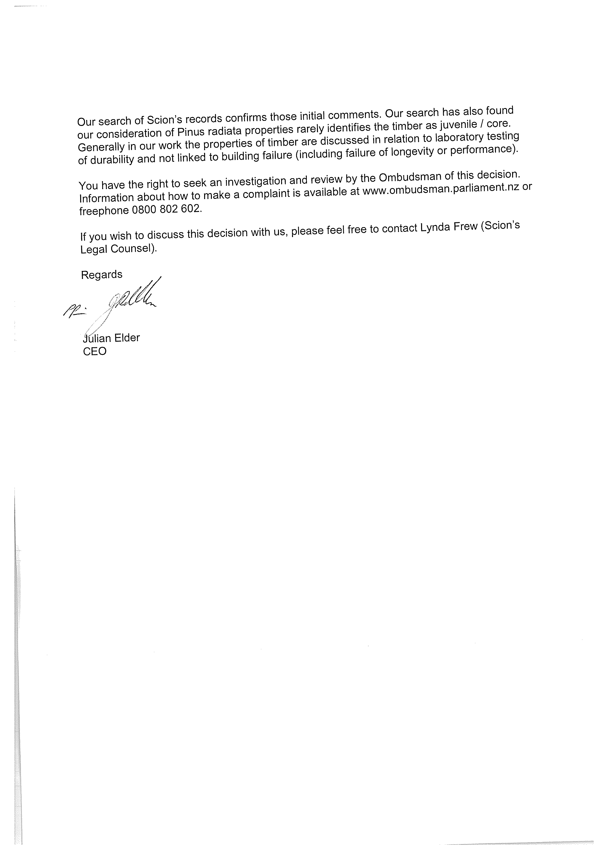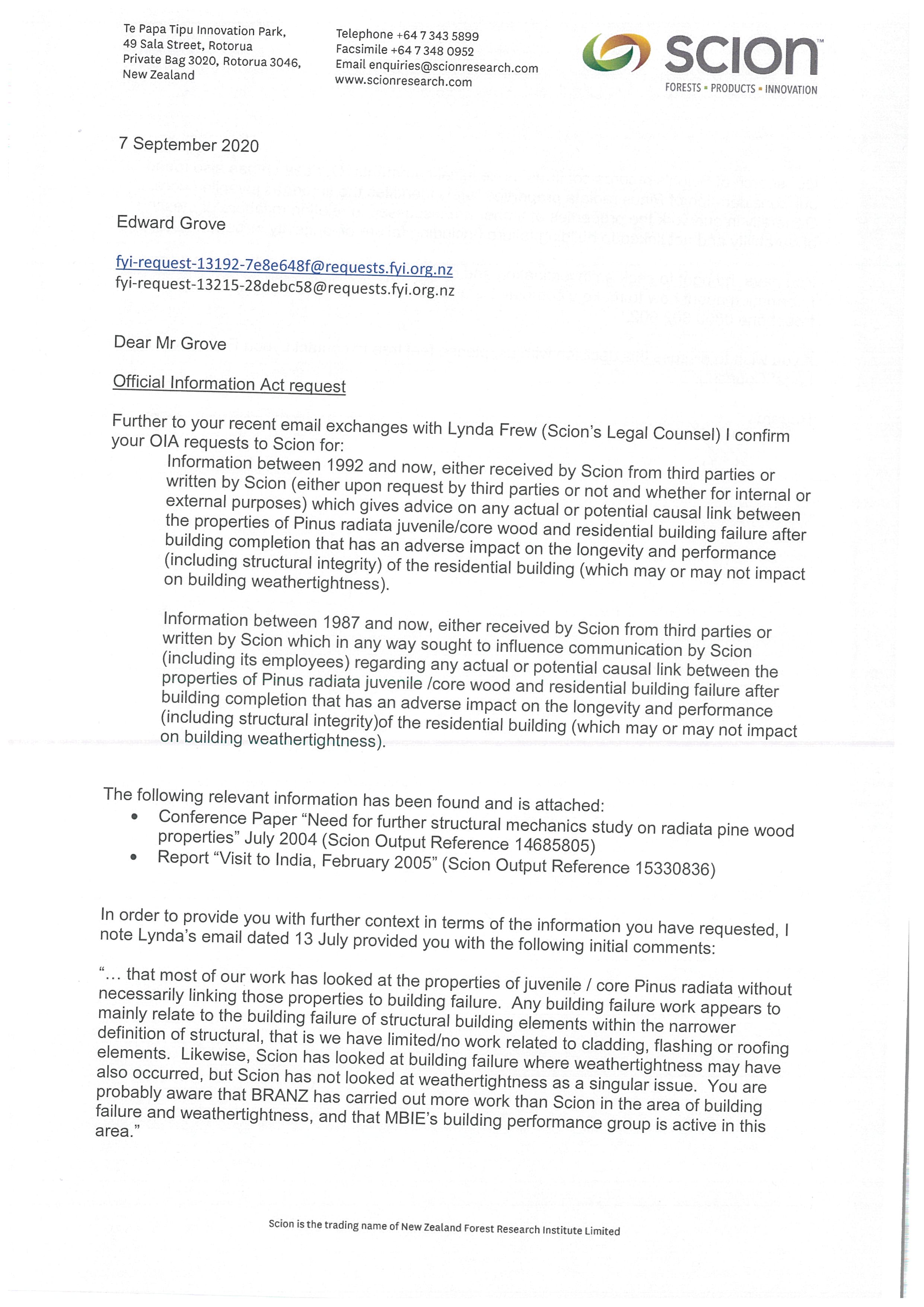 Directives issued to, or by, NZFRI restricting mention of Juvenile Wood in relation to Building Failures