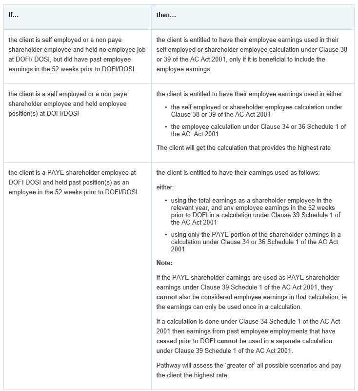 a AC Act 2001, Schedule 1 Clauses 38(4) and 39(4) allow self employed and shareholder employee calculations to be made