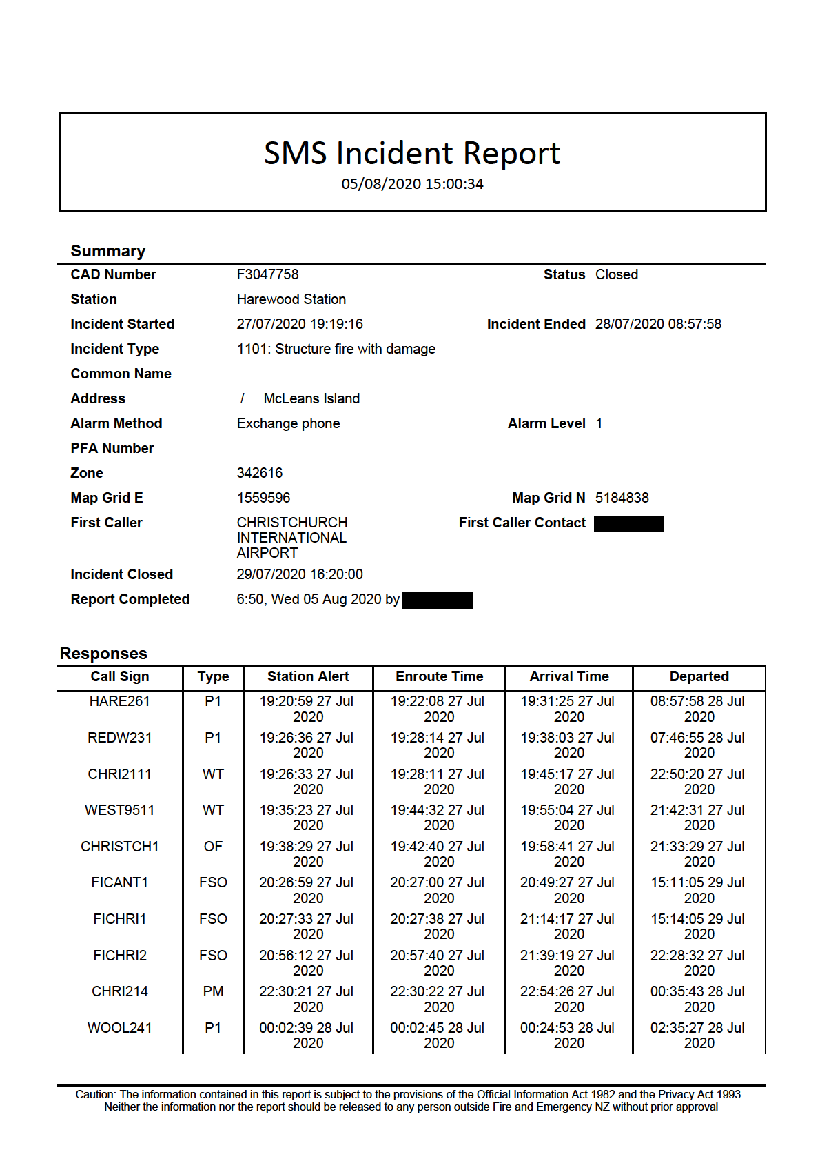 Neither the information nor the report should be released to any person outside Fire and Emergency NZ without prior approval