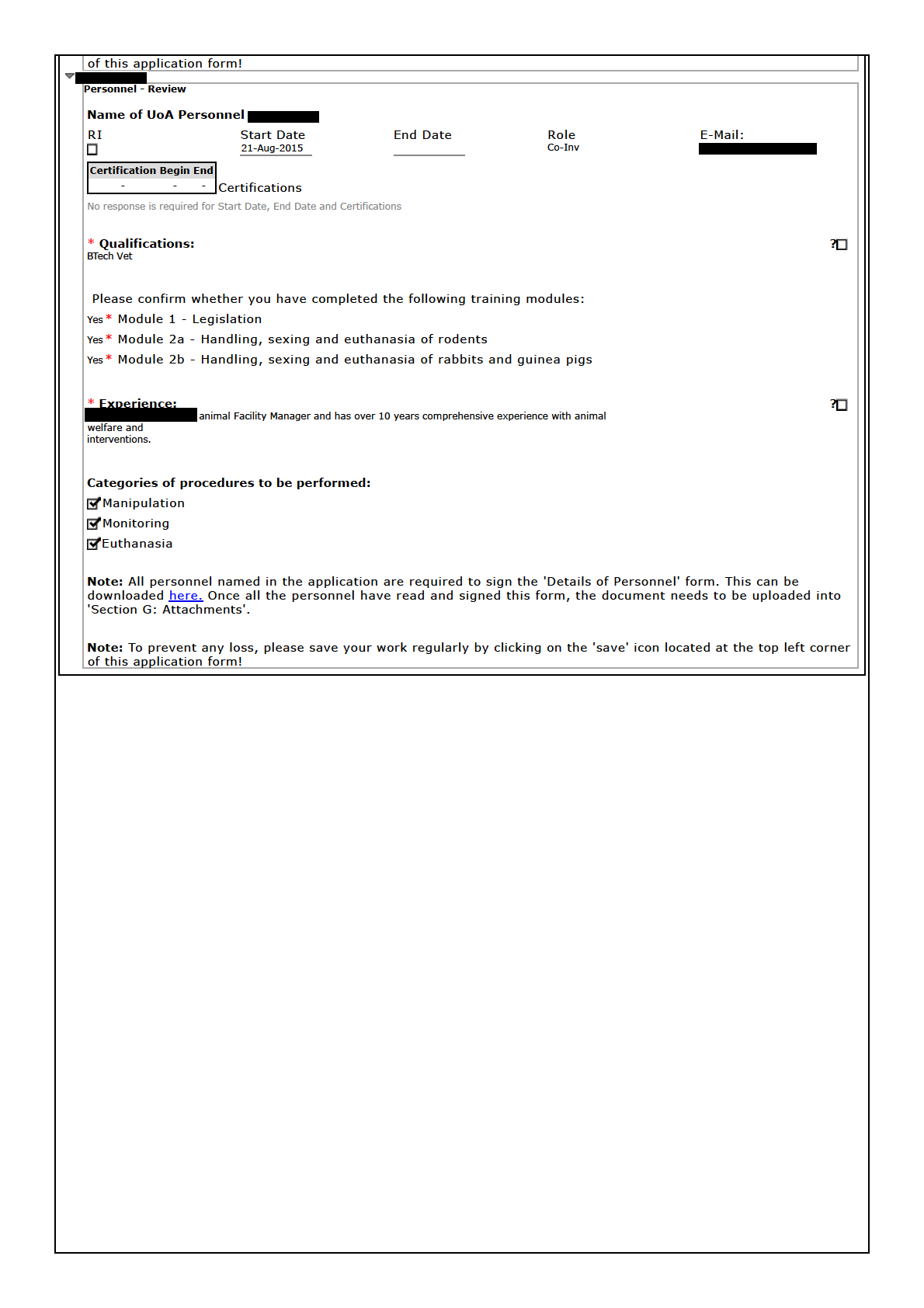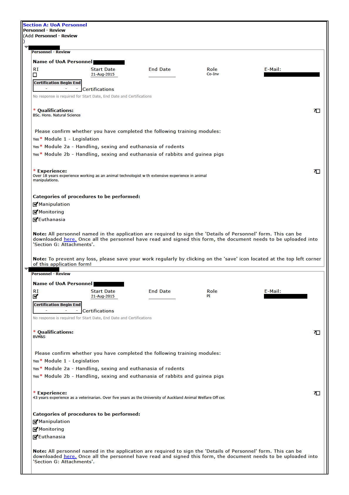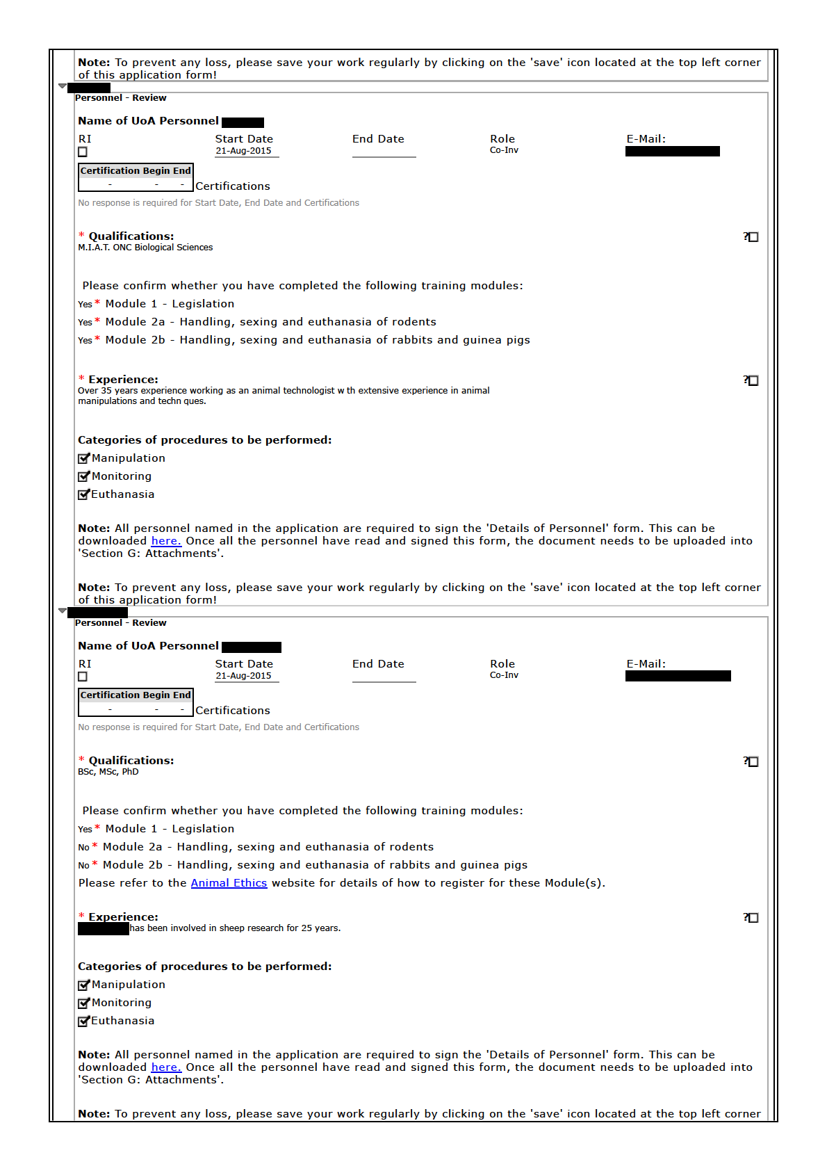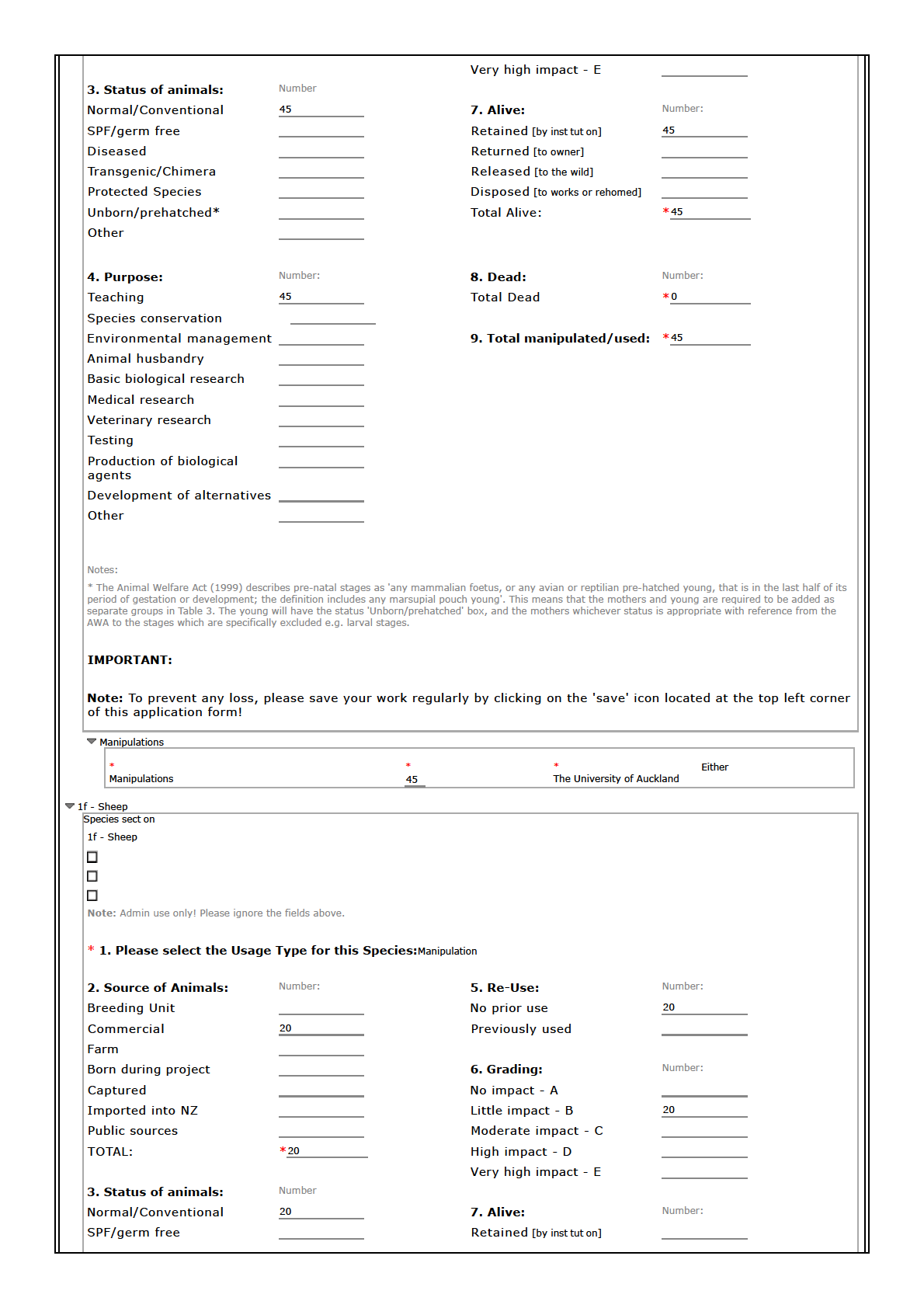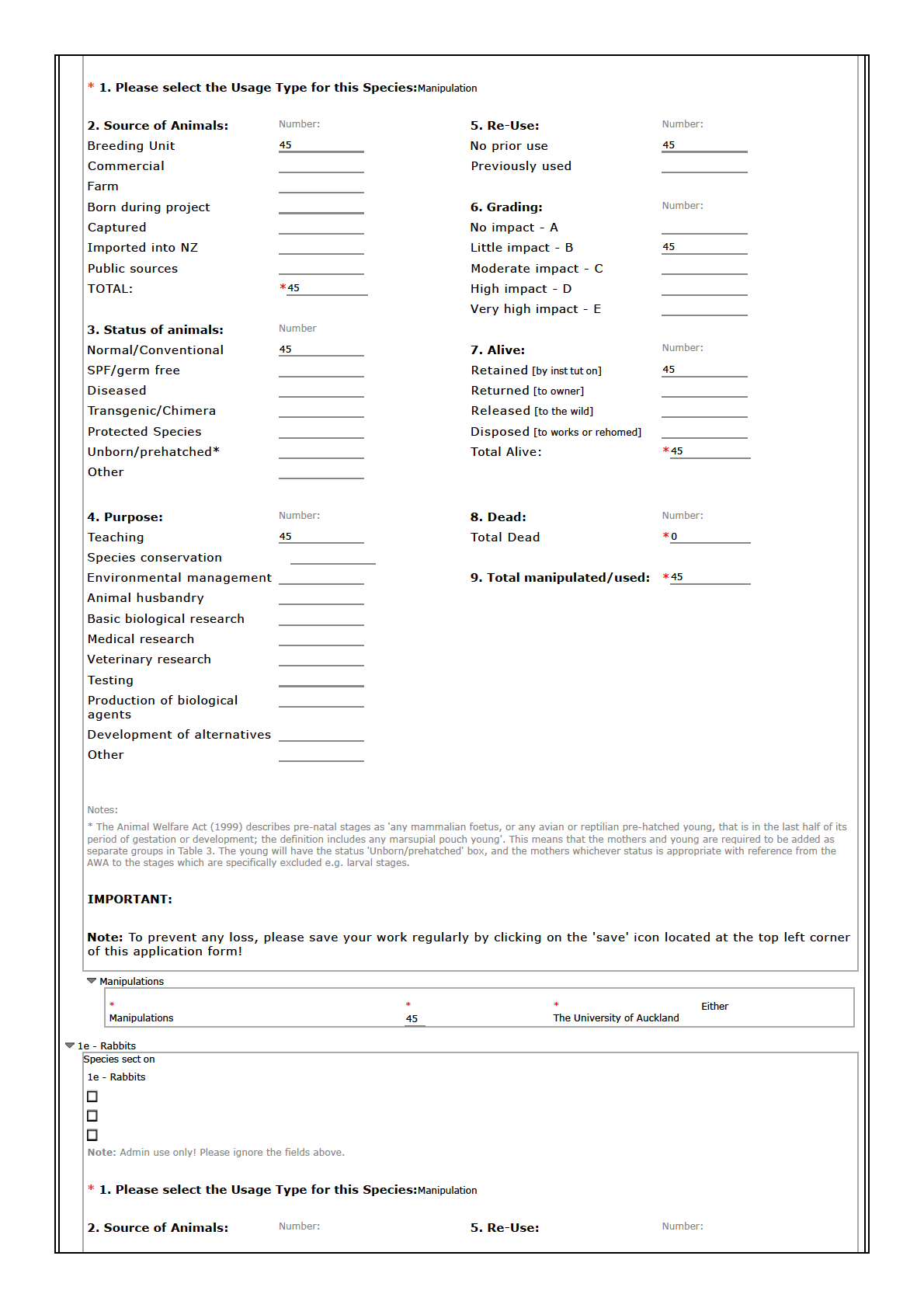 for animals recovering from anaesthesia, sampling etc, and clear humane endpoints.