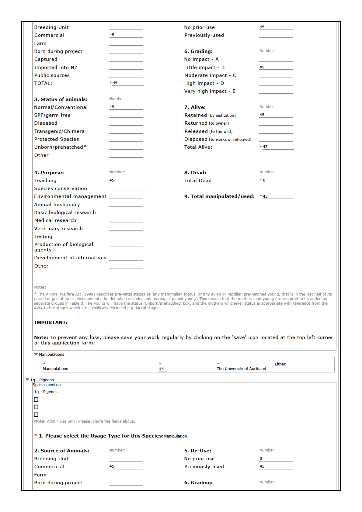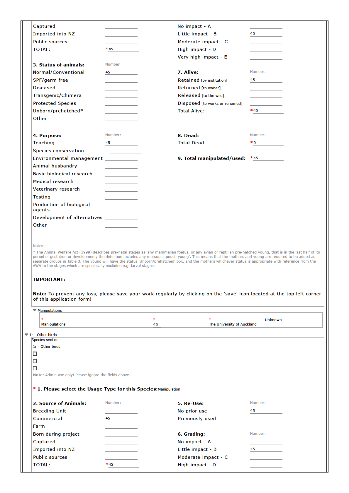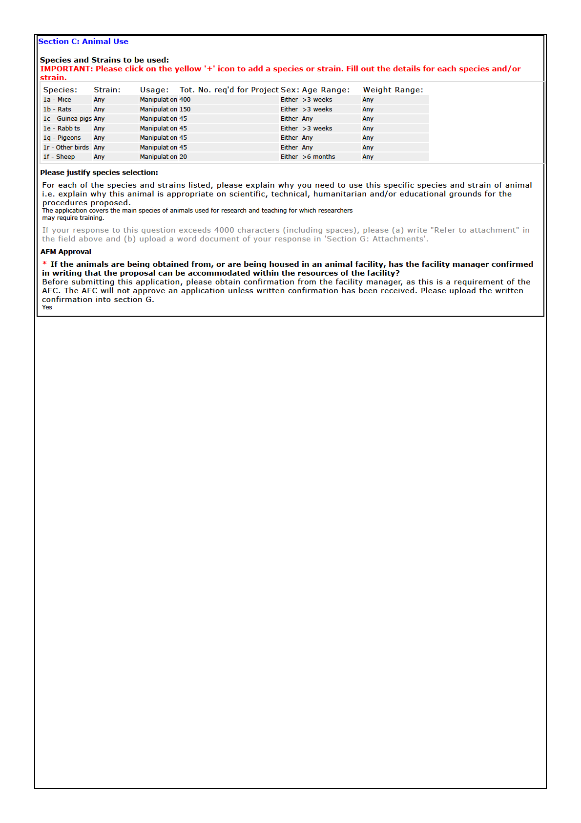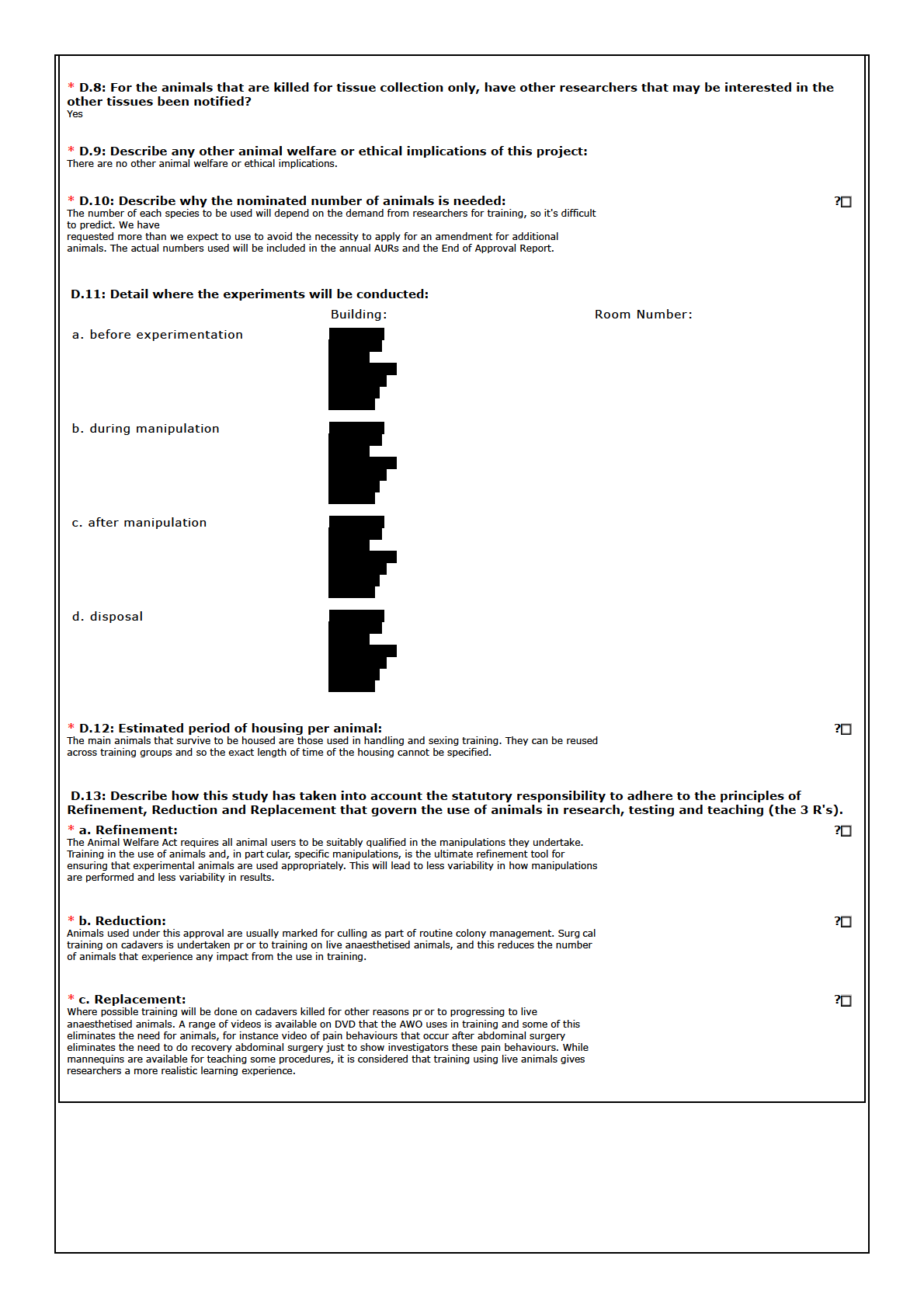 to their cages, details should be given for some of the answers which are currently N/A, such