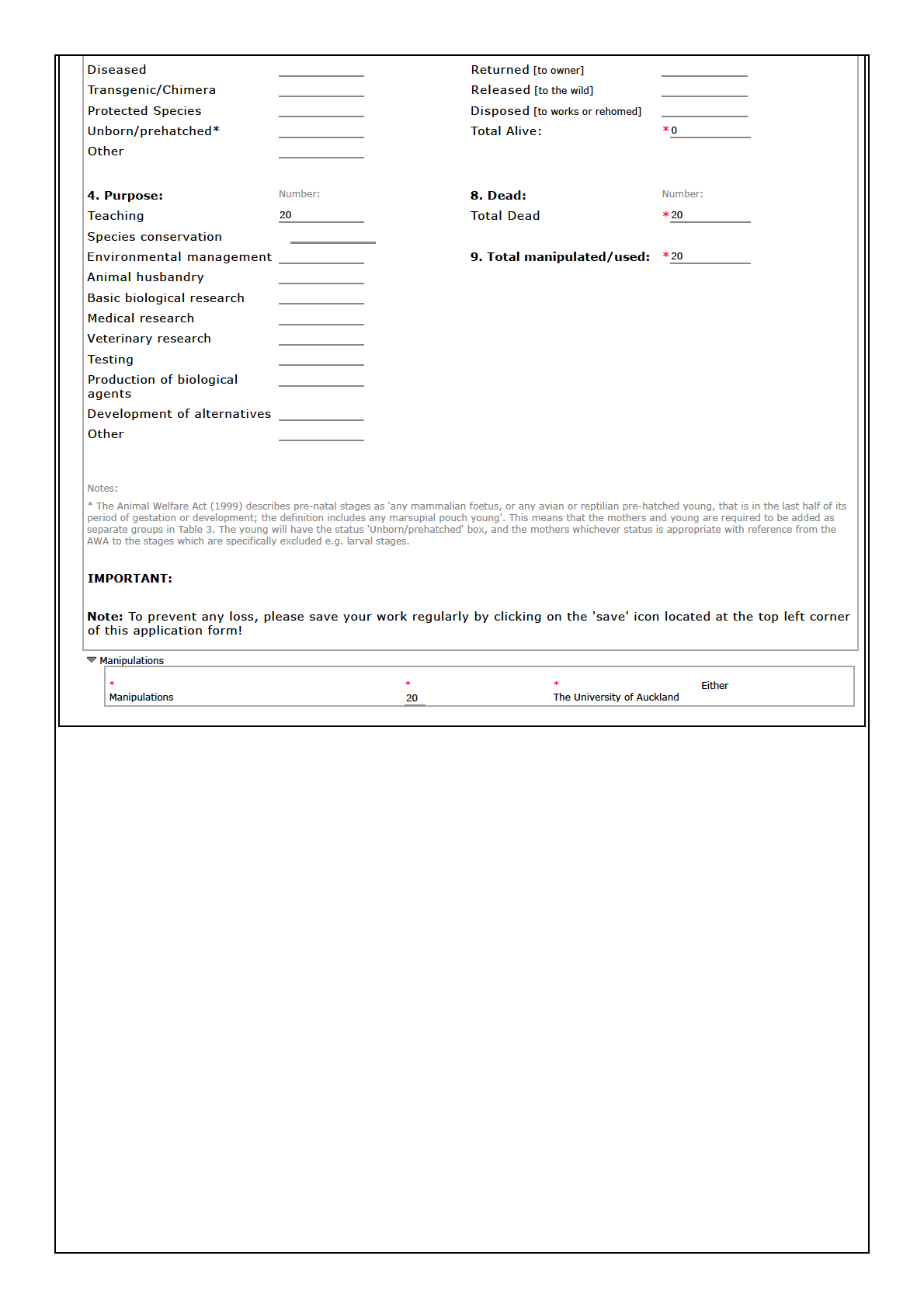 II. Some manipulation endpoints state that if any pain or distress is observed, the animals