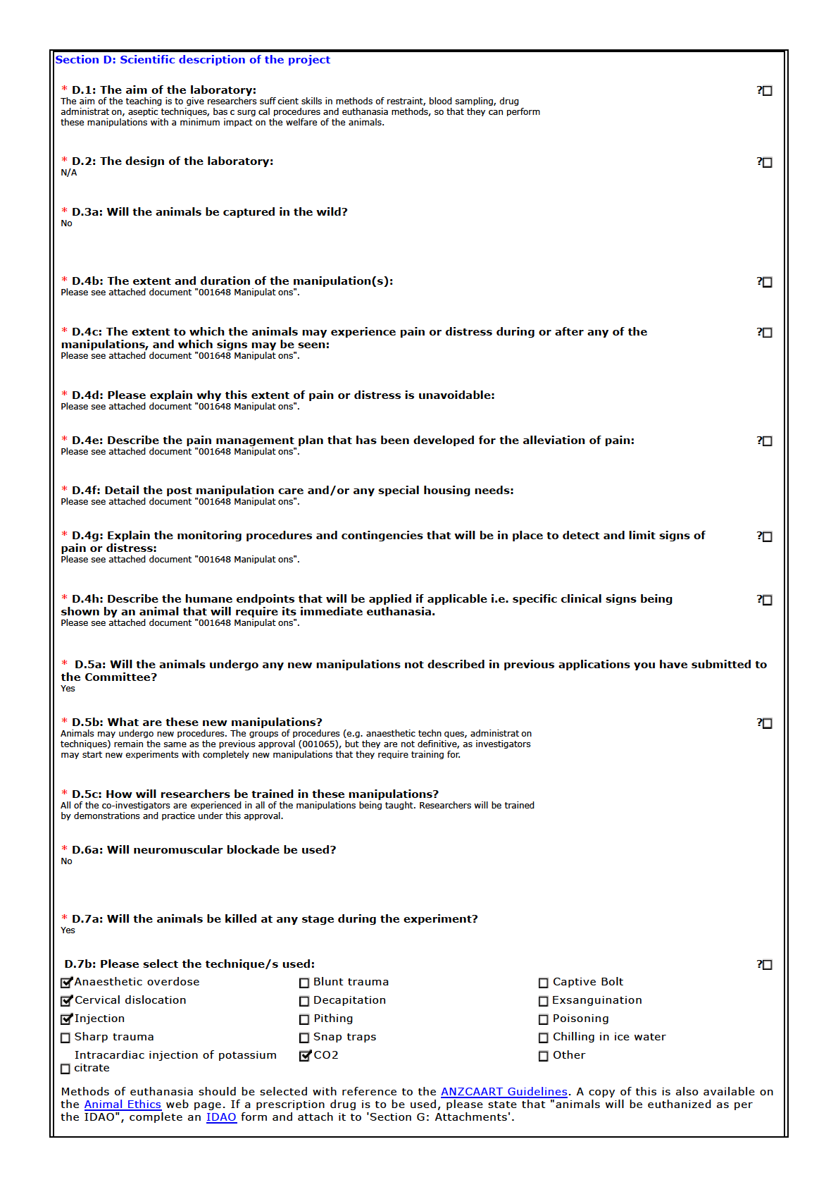 I. Given that some of the animals will be handled, injected, sampled from and then returned