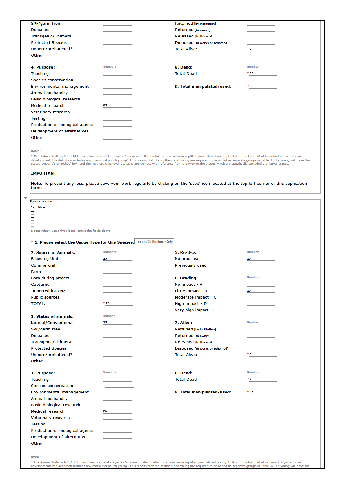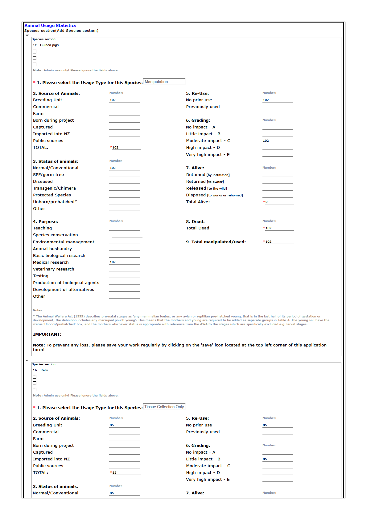status 'Unborn/prehatched' box, and the mothers whichever status is appropriate with reference from the AWA to the stages which are specifically excluded e.g. larval stages.