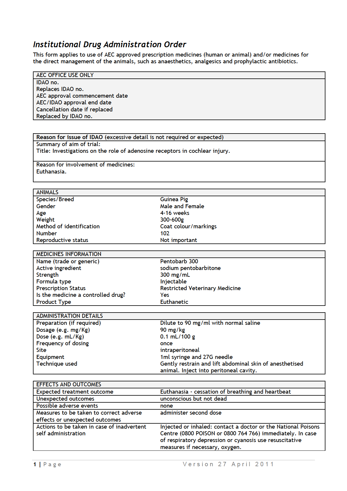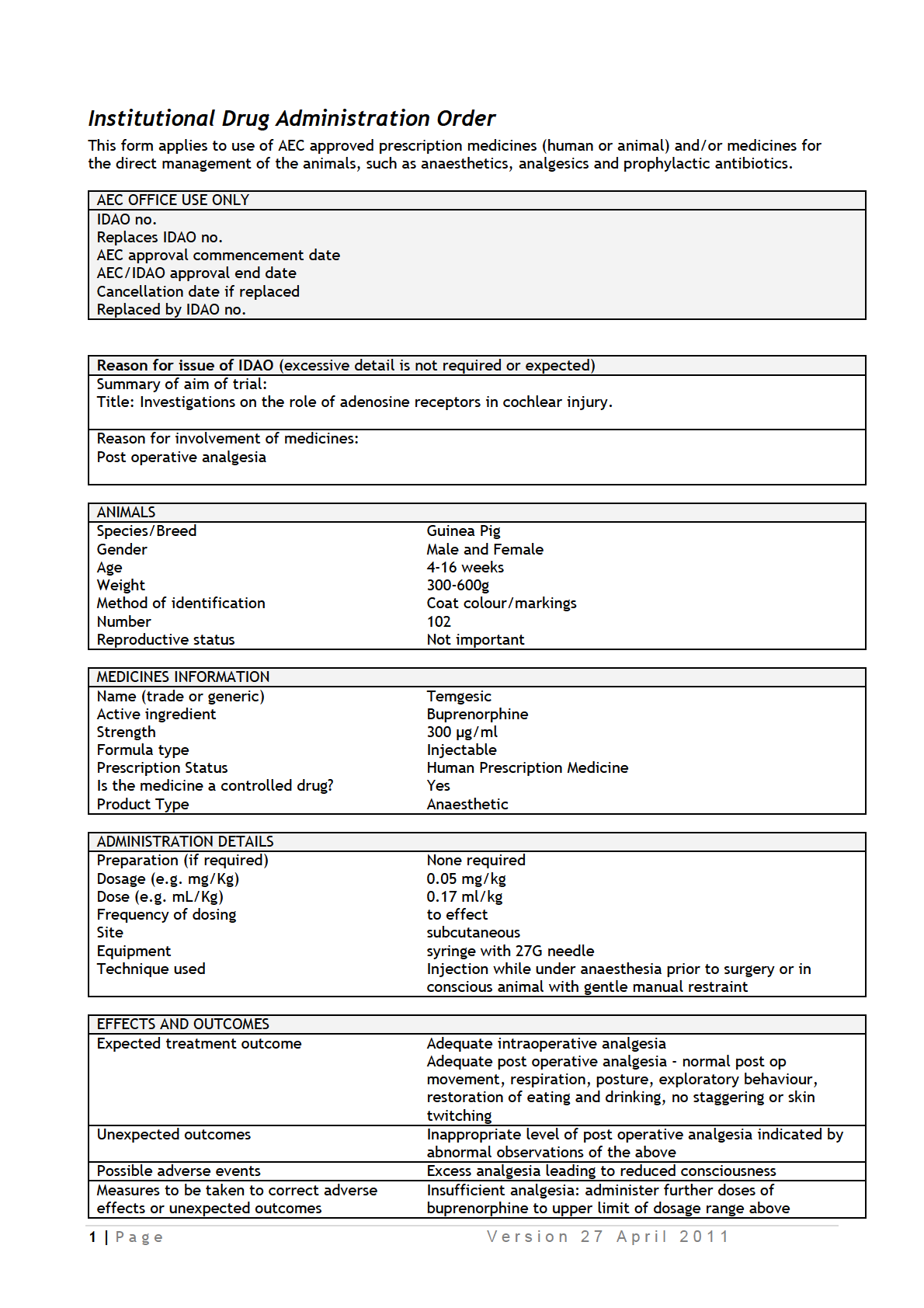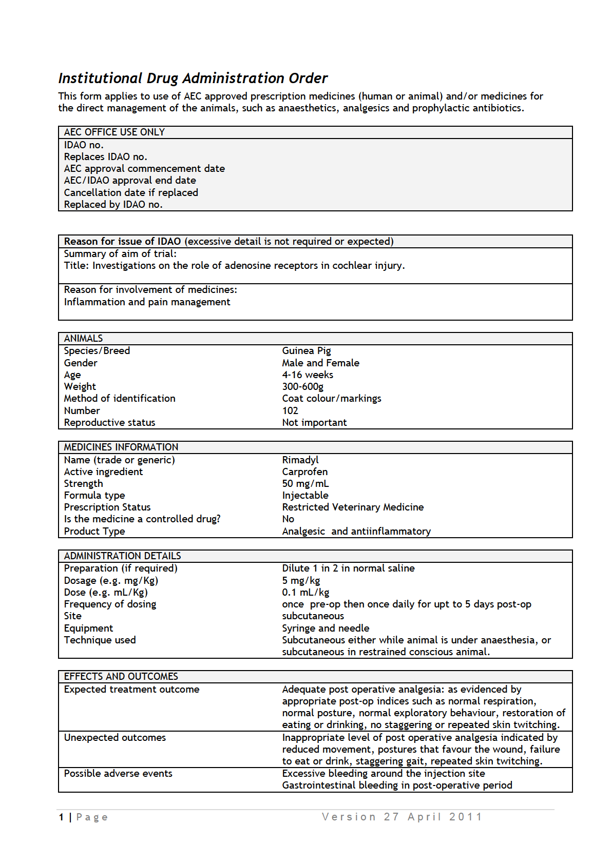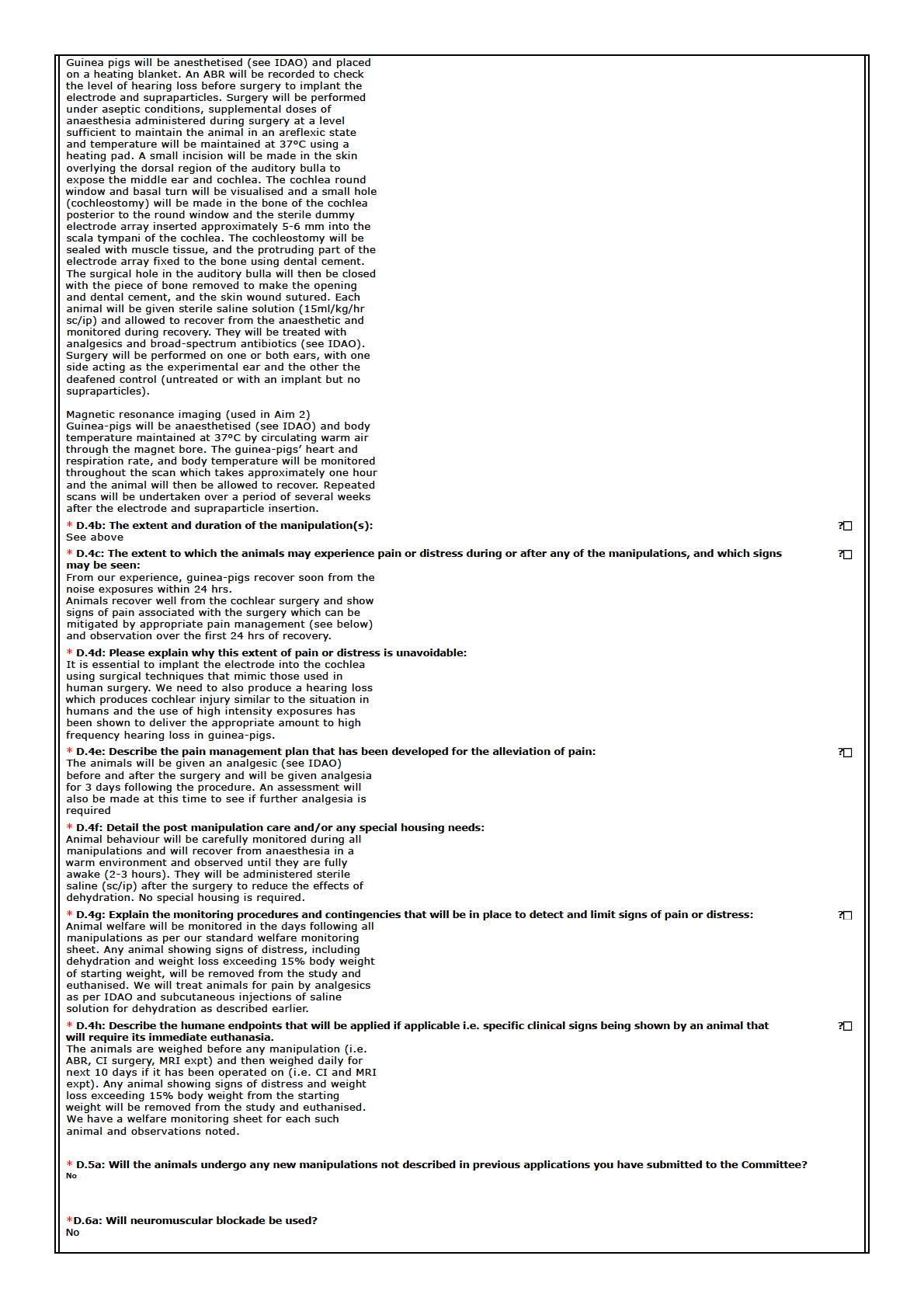 The Guinea pigs will be anesthetized as per IDAO. The animal will also receive analgesic as