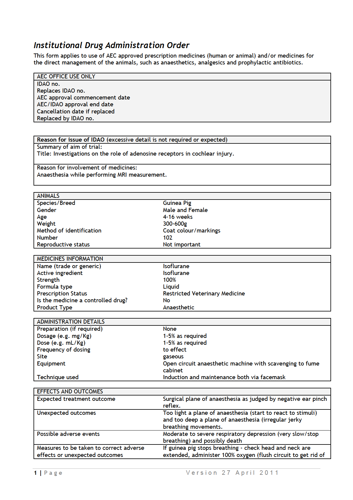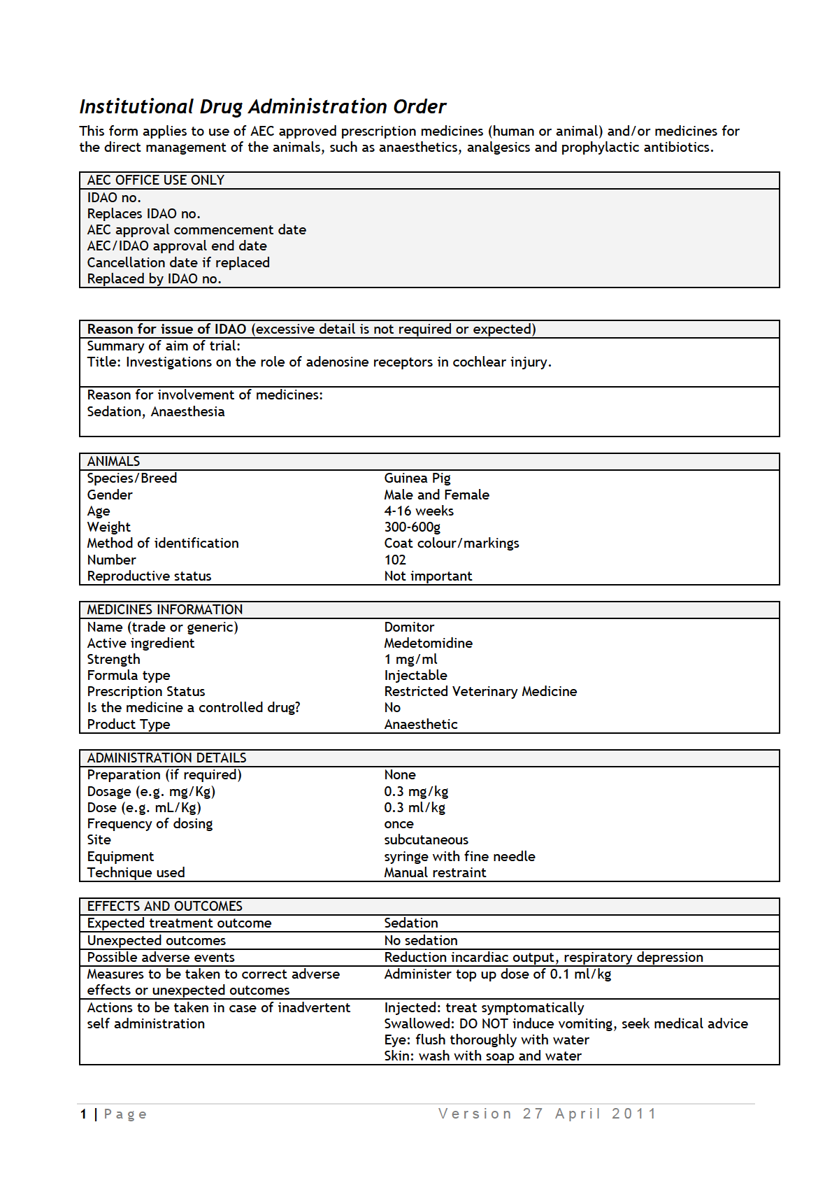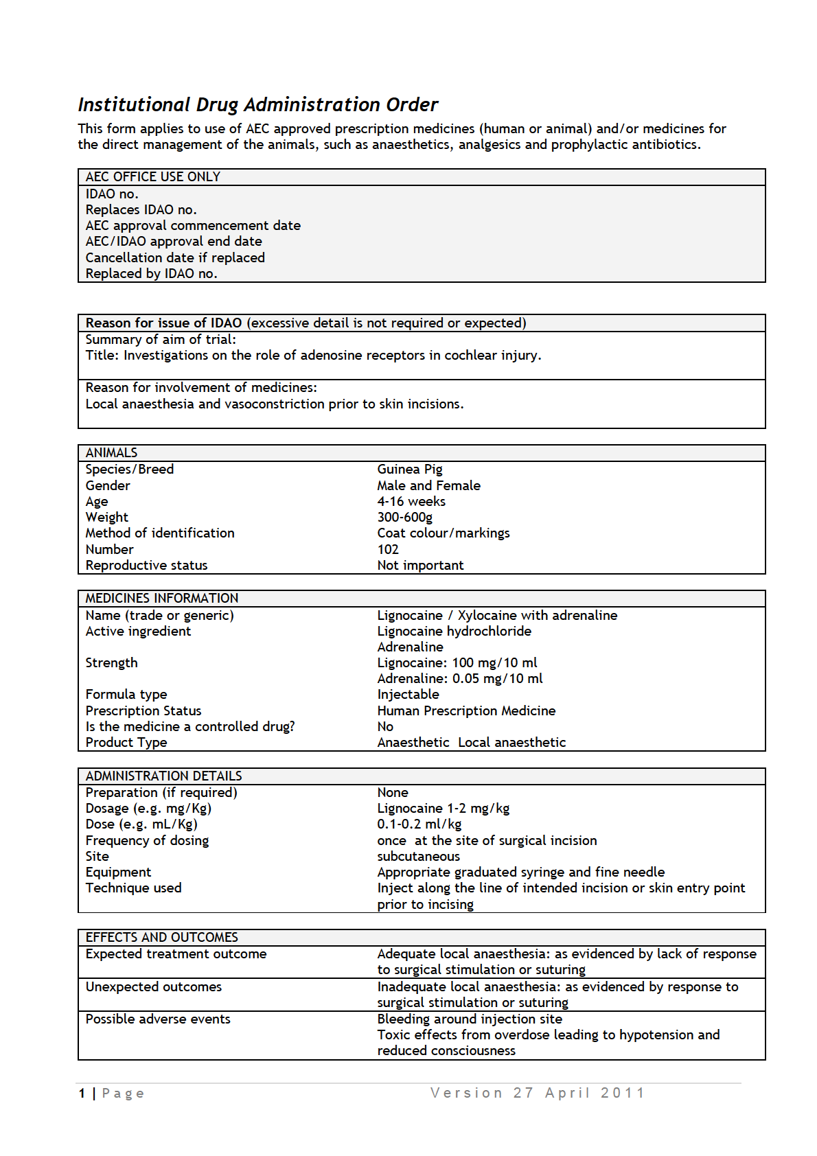 The Guinea pigs will be anesthetized as per IDAO. The animal will also receive analgesic as