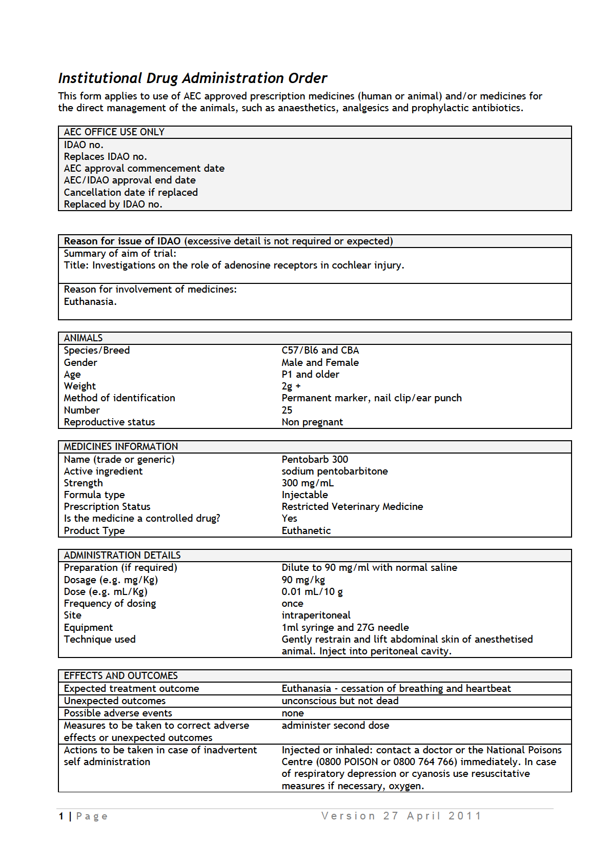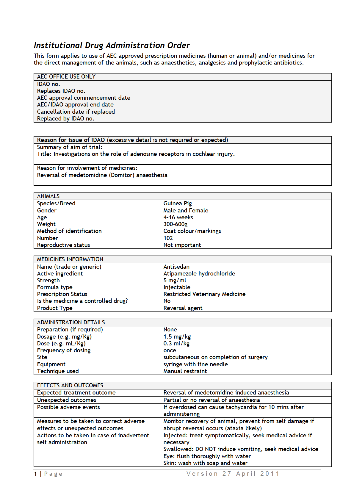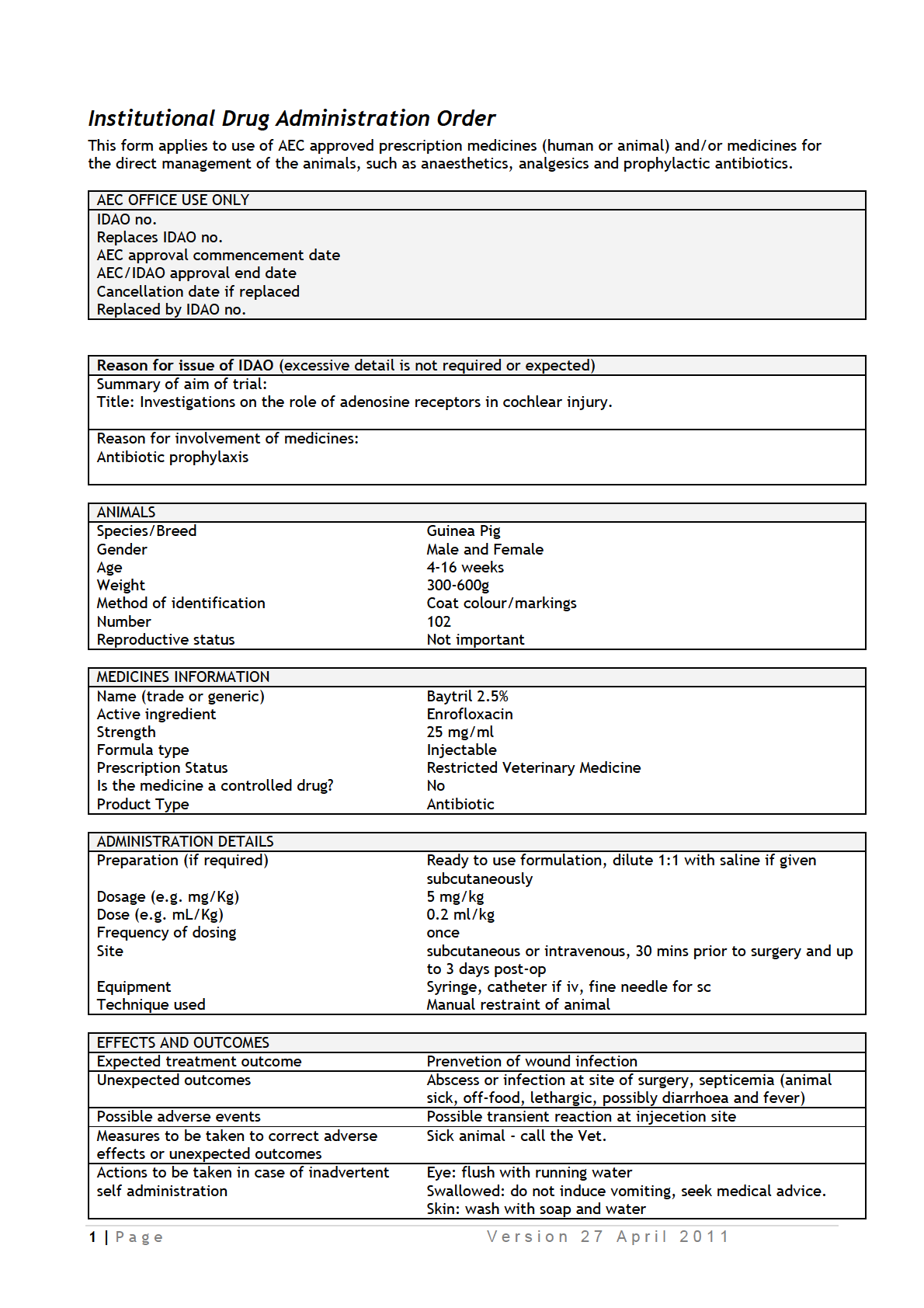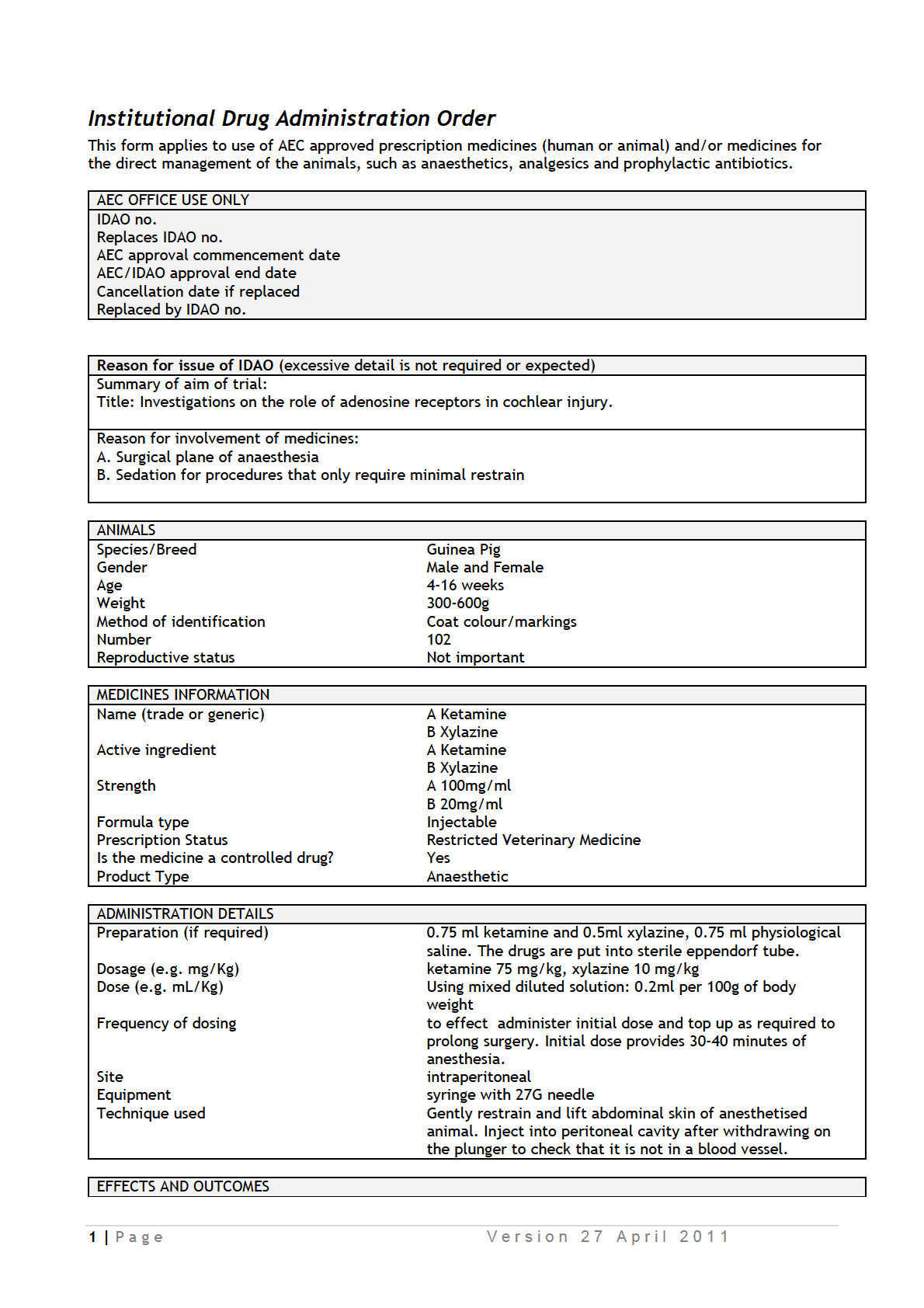 The Guinea pigs will be anesthetized as per IDAO. The animal will also receive analgesic as