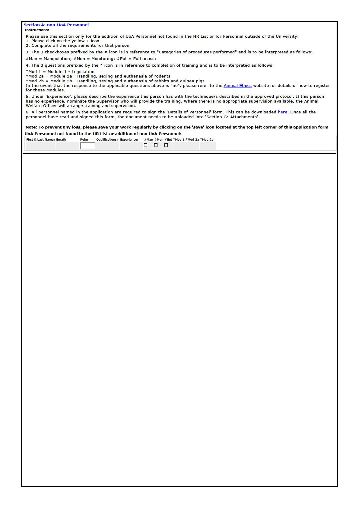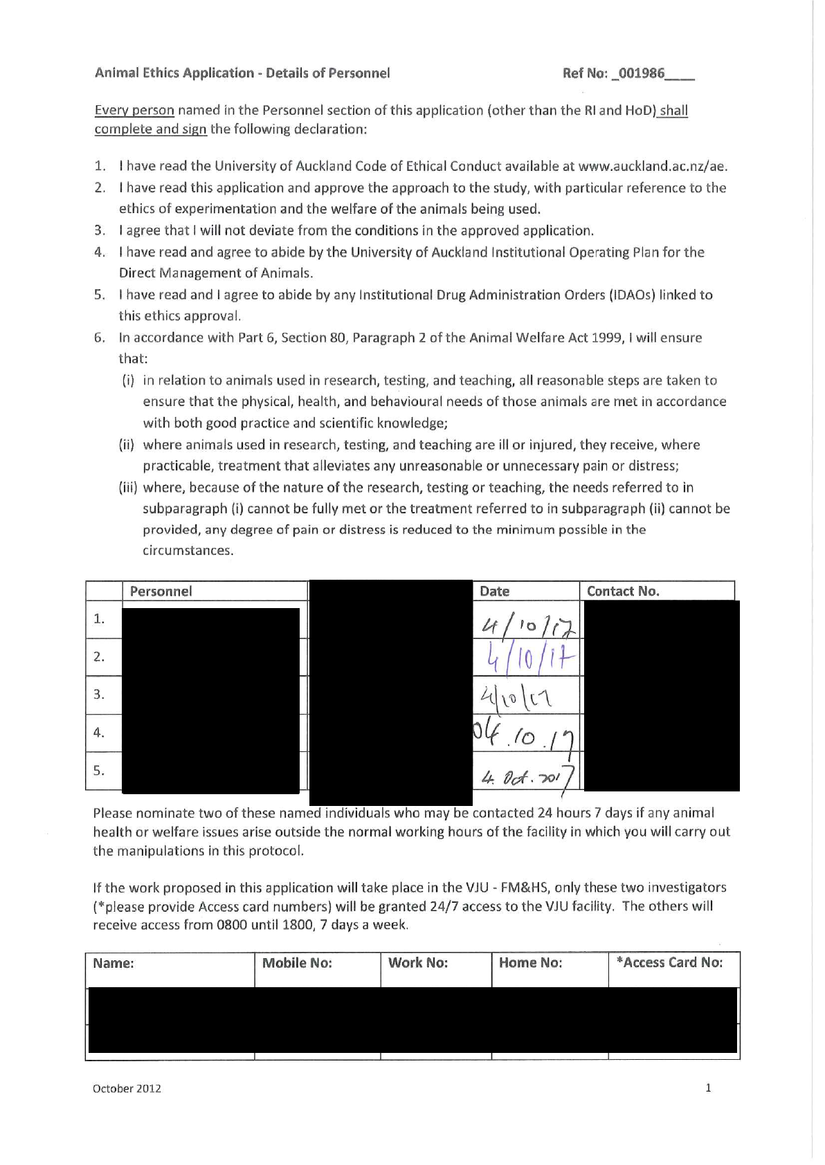 Assistance with questions within the application form can be emailed to the Animal Ethics Administrator or by phone on 09 923 6356 (DDI) or