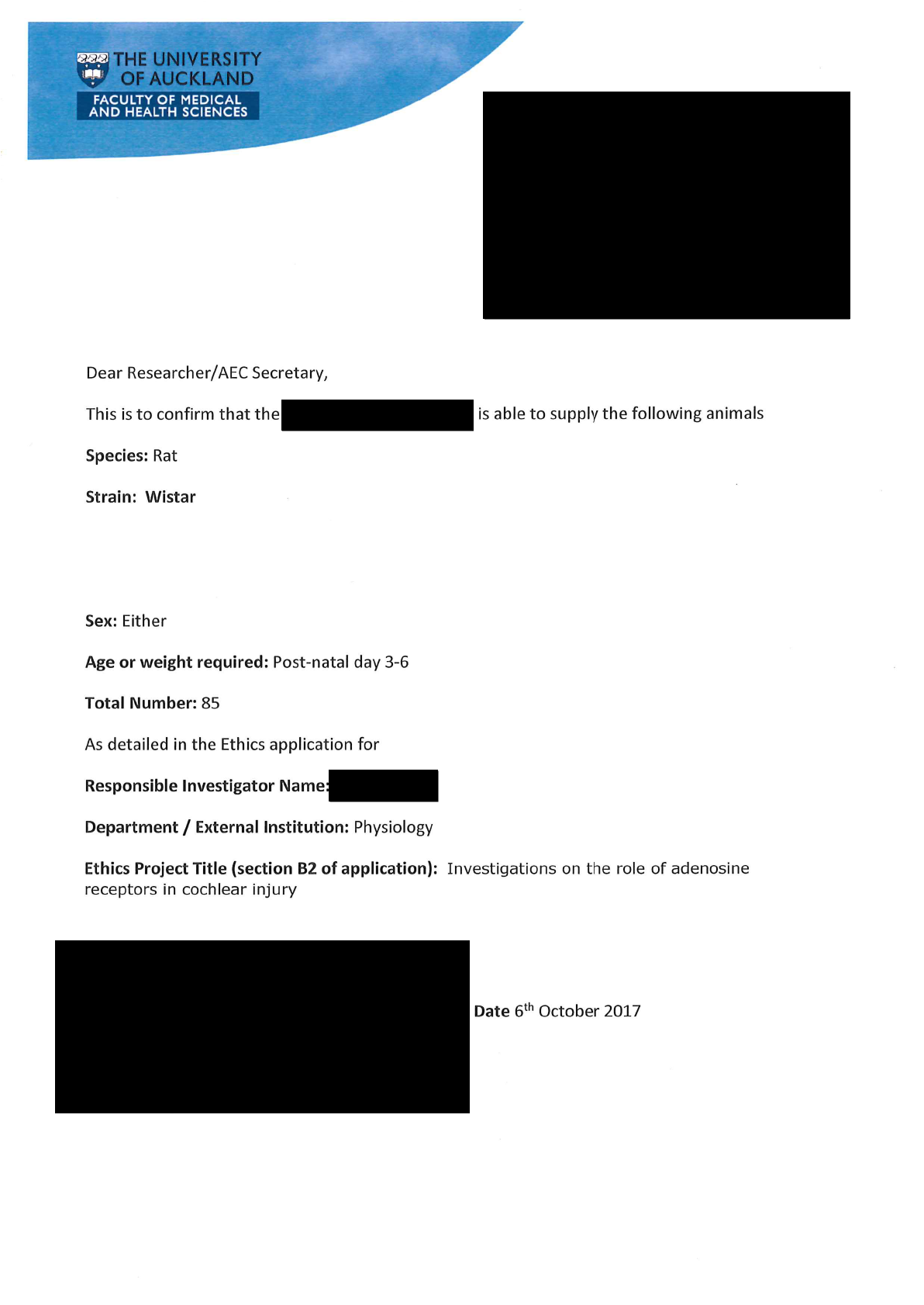 If you have not received a letter of receipt after 3 days from submitting your application, please contact the Animal Ethics Administrator