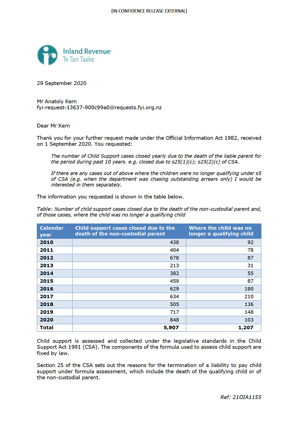 Inland Revenue is generally unaware of the cause of a customer’s death, including