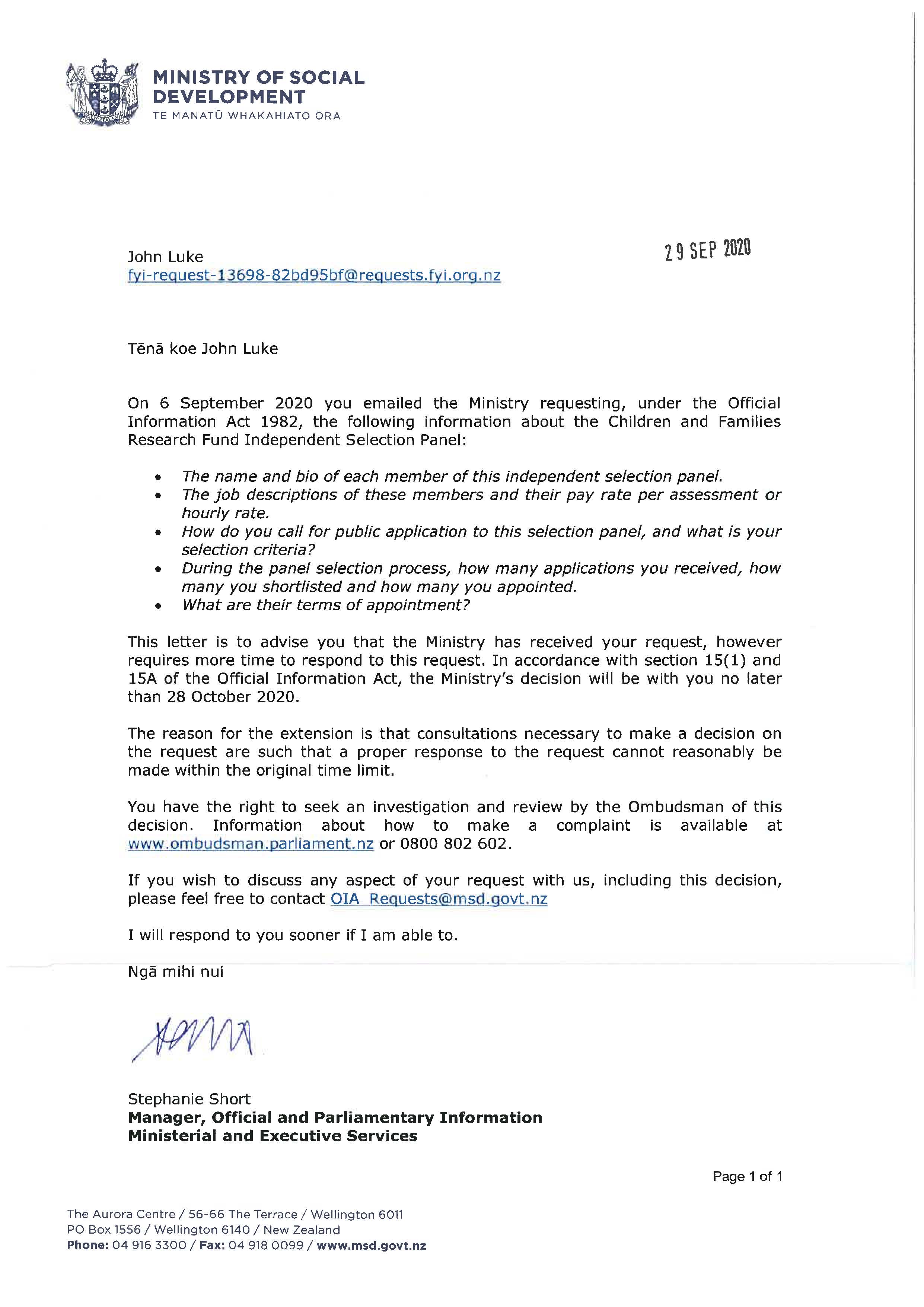Children and Families Research Fund – 2020/2021 funding round OIA Act request