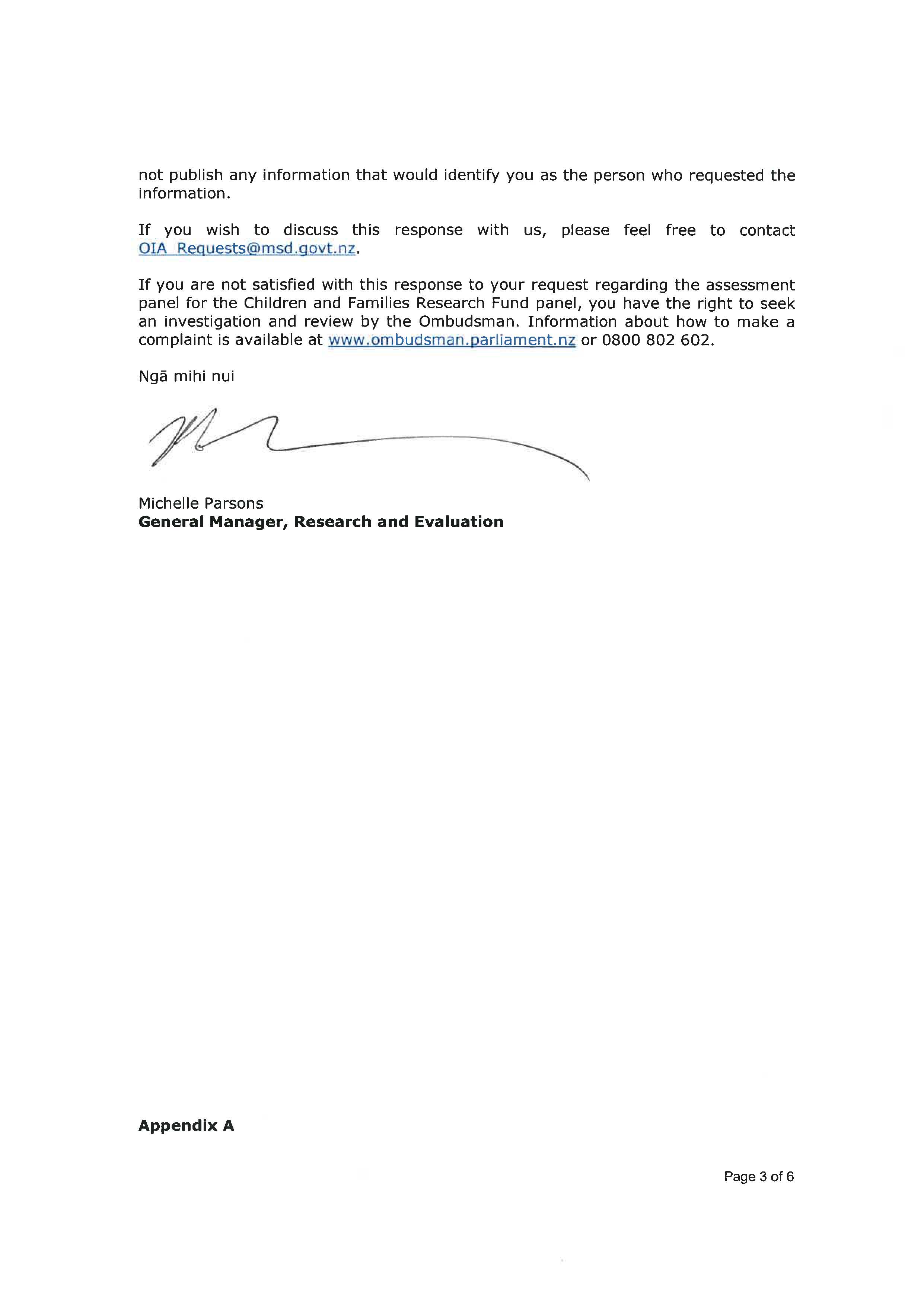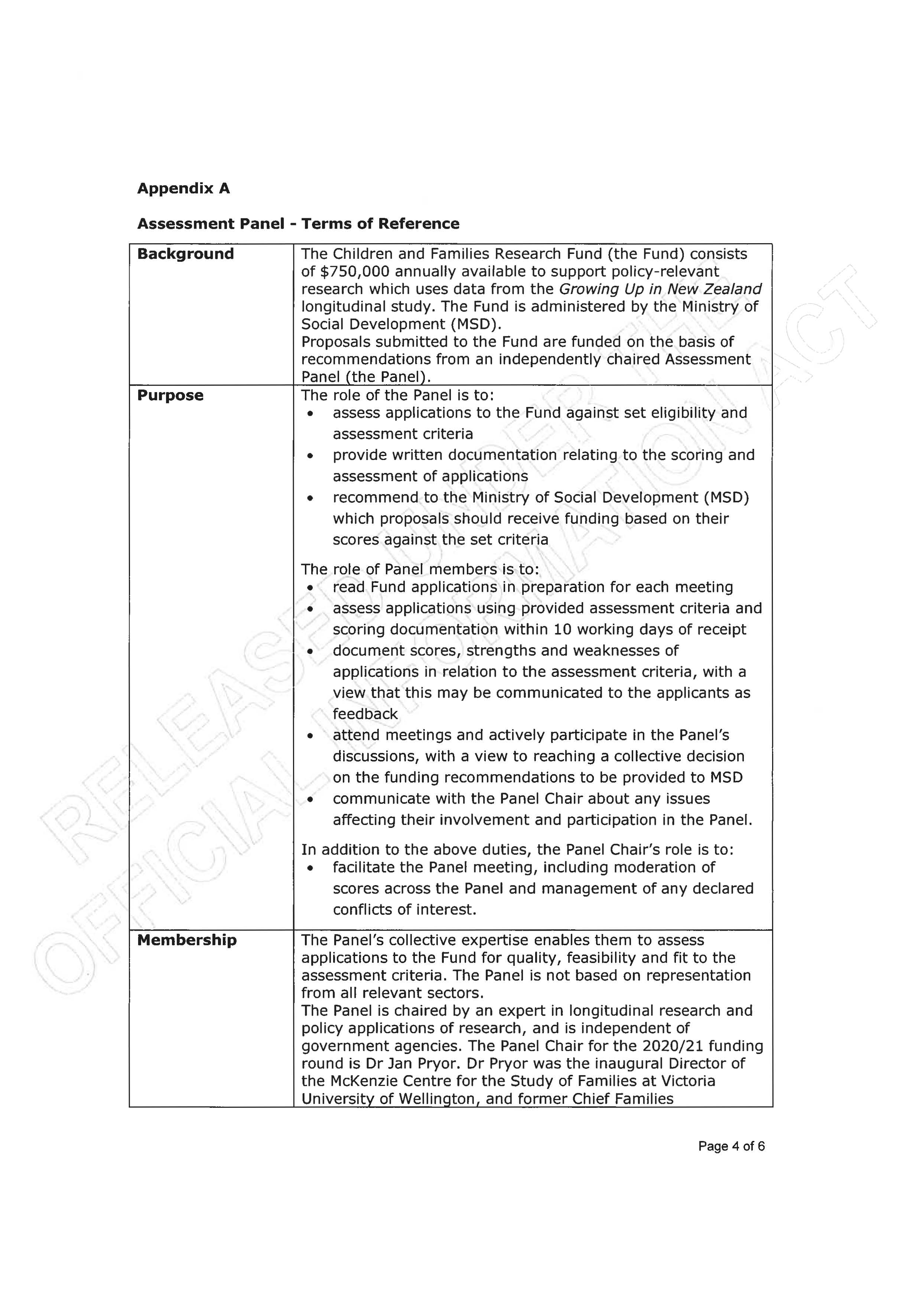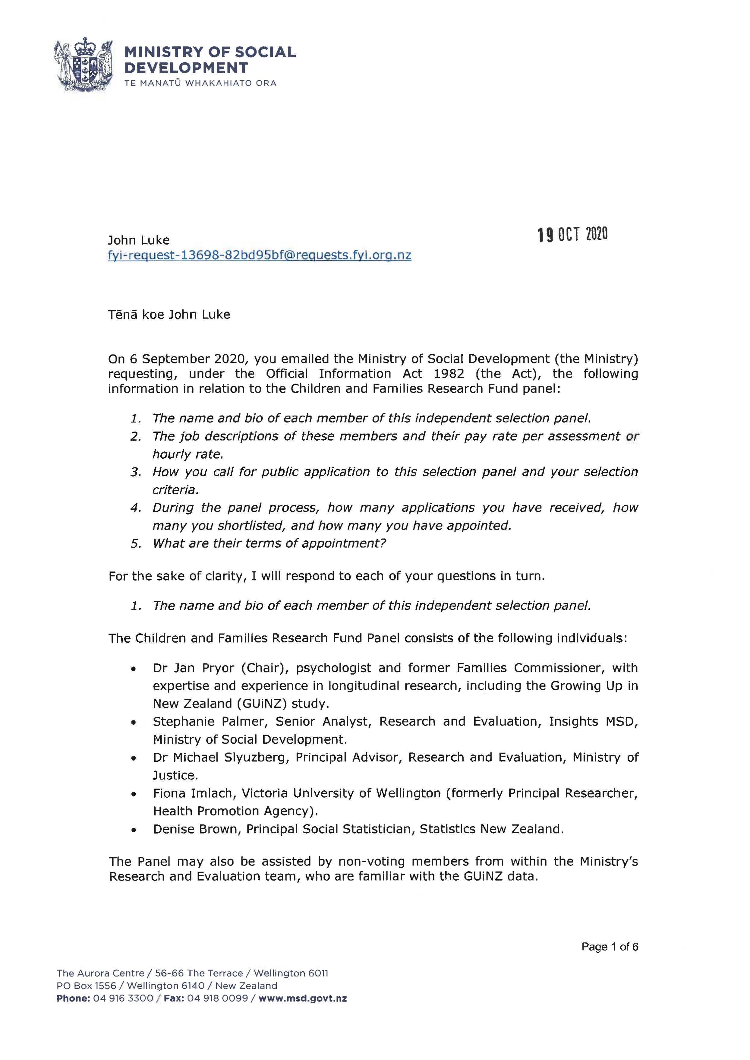 Children and Families Research Fund – 2020/2021 funding round OIA Act request
