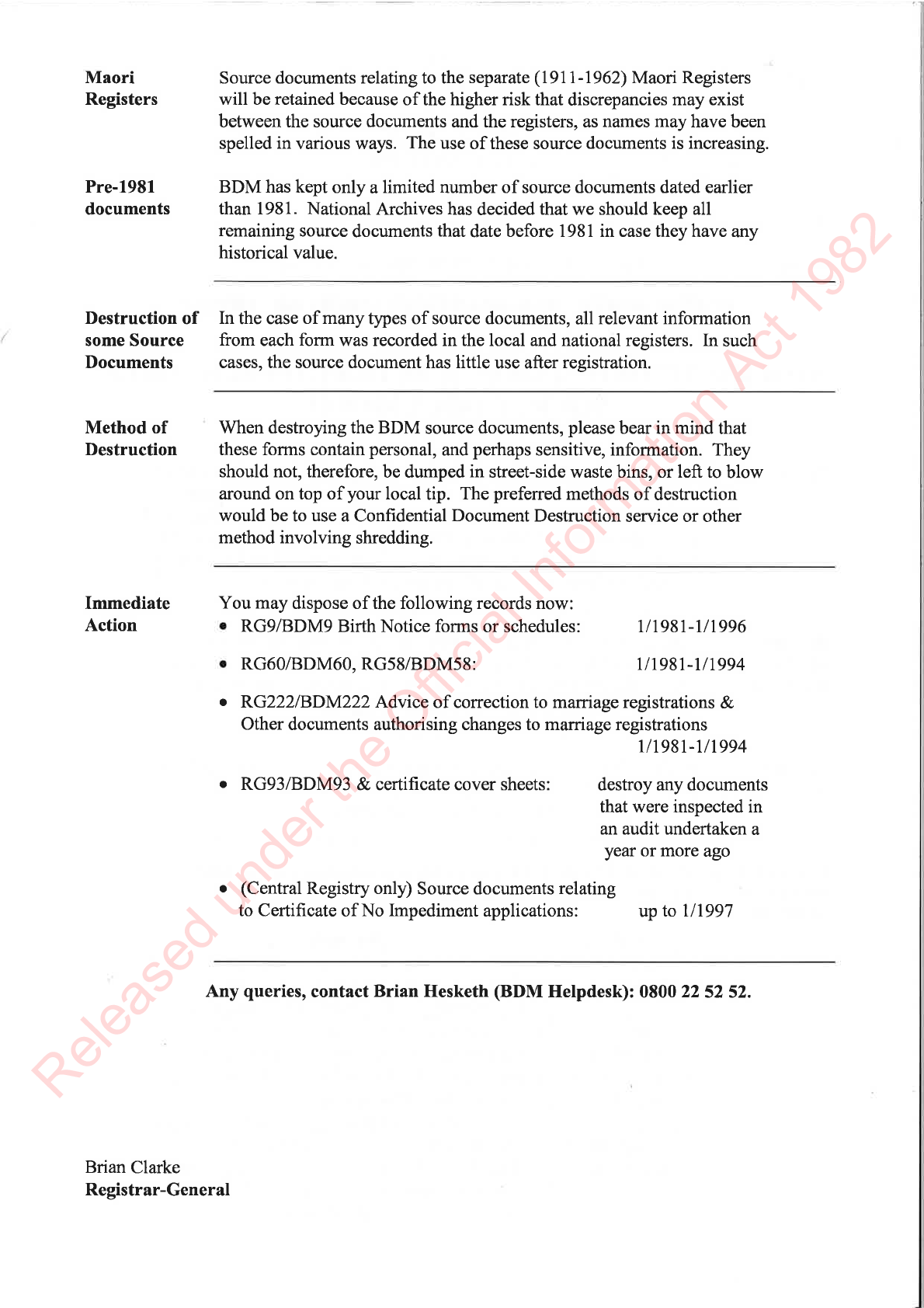 Destruction of Birth Notice (RG-9) Document