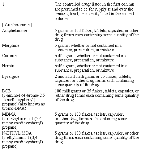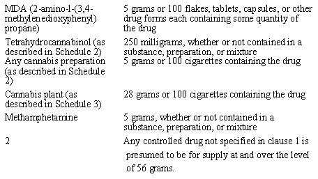 Presumption for supply levels were set for MDMA and amphetamines in June