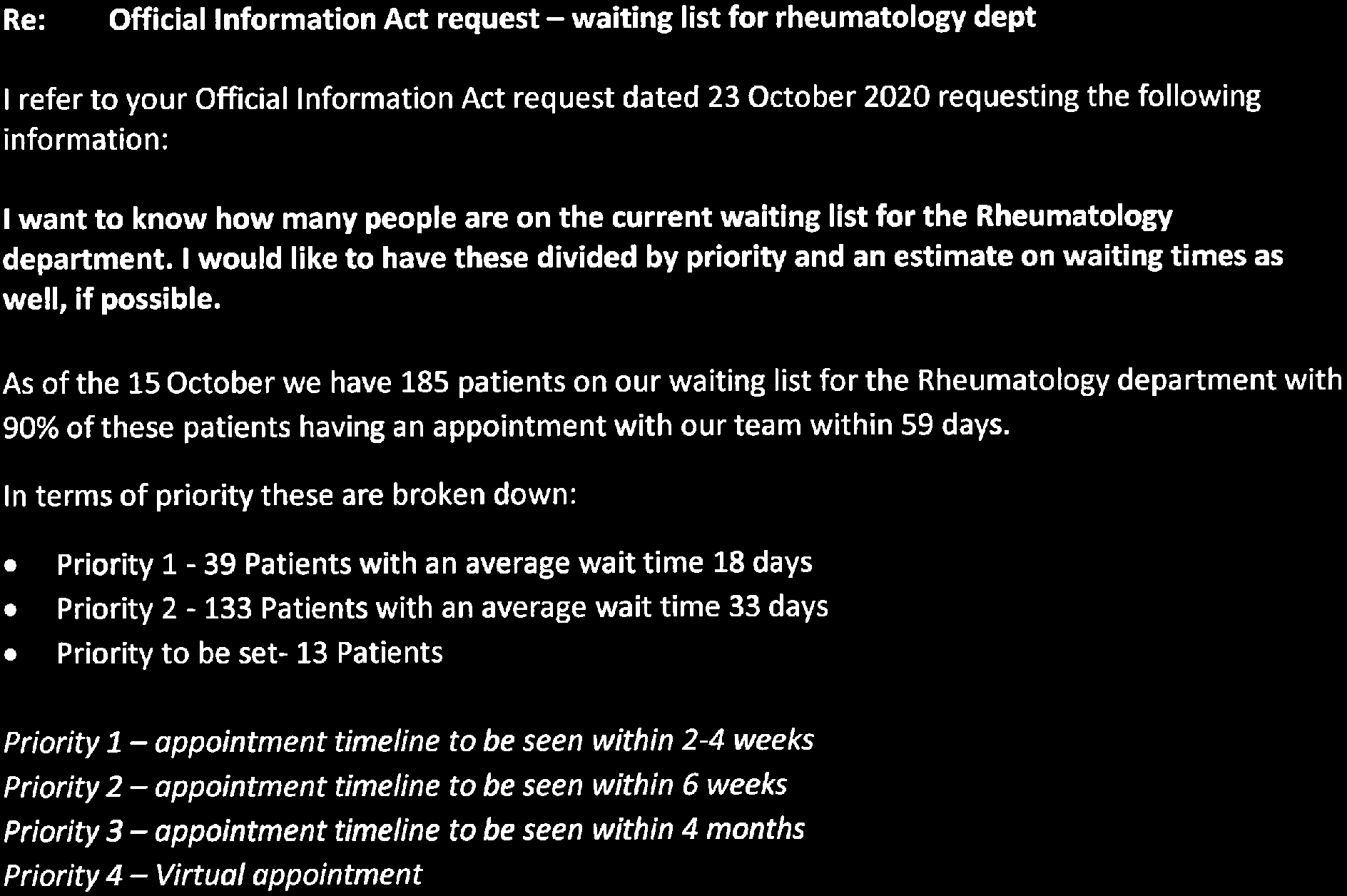 Waiting list for GP referrals to rheumatology clinic