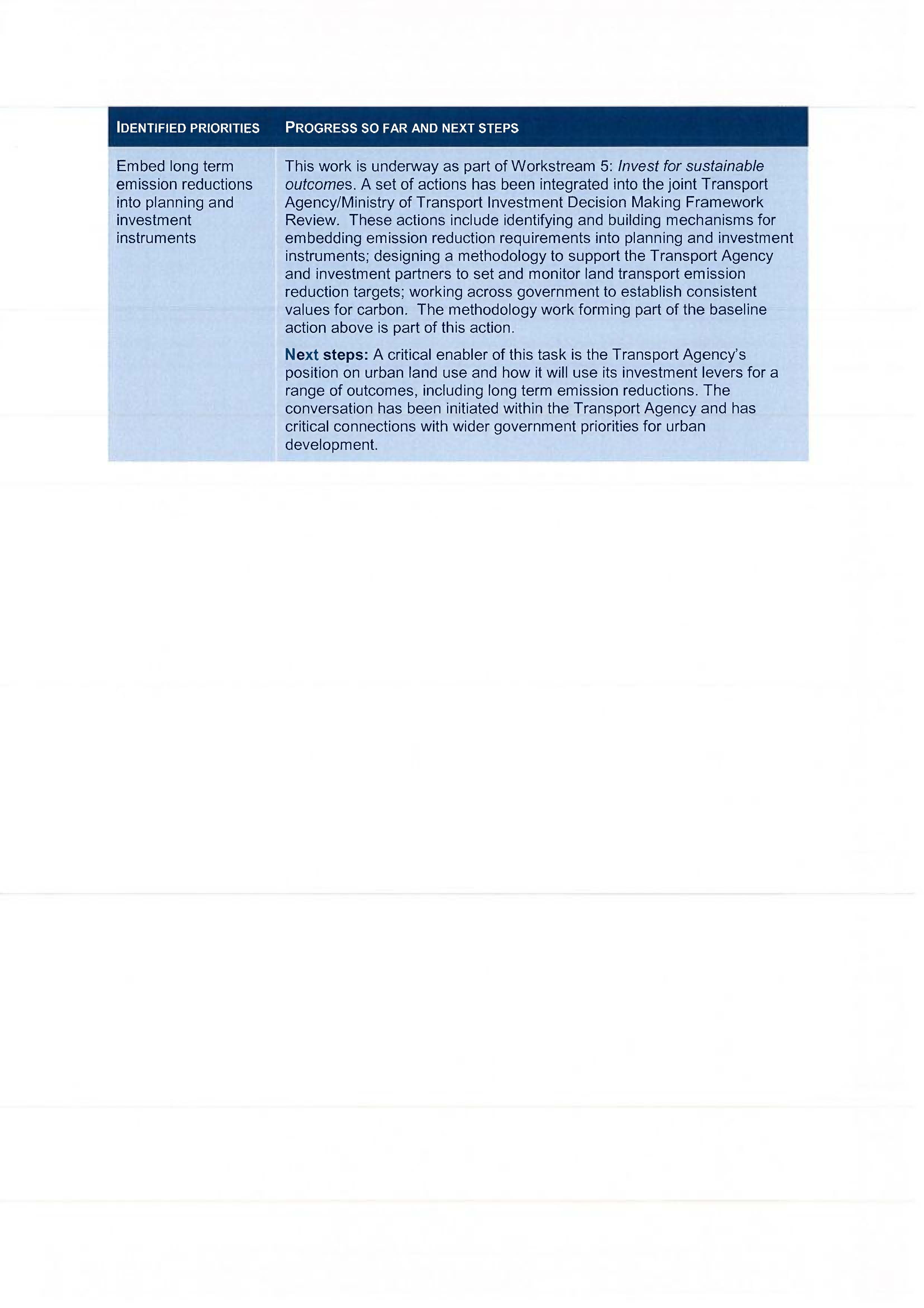 • whether NZTA will be in a position in 2021 to apply an emissions lens to their assessment of