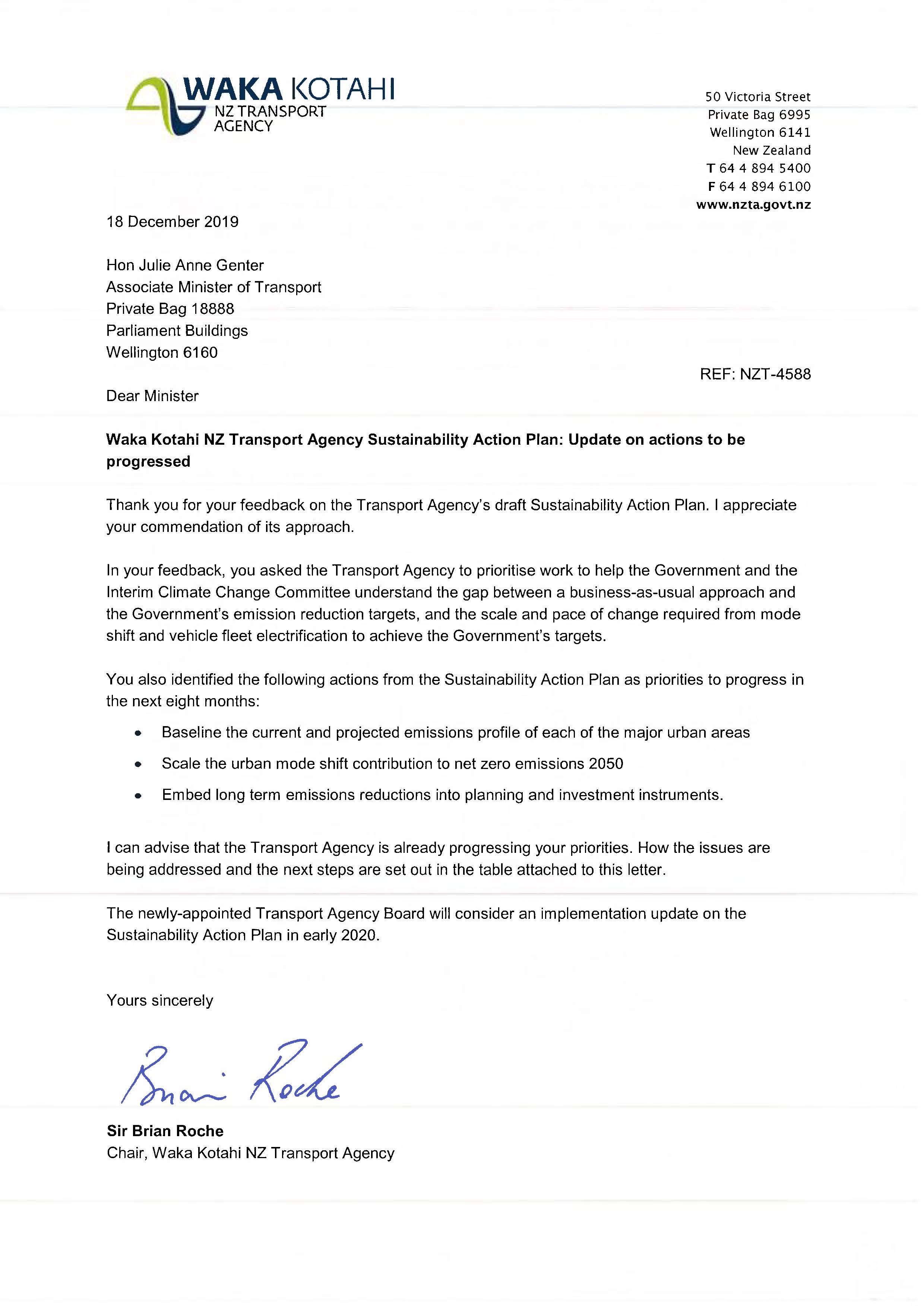 This briefing provides you with information on Toitū Te Taiao – Waka Kotahi’s Sustainability