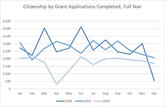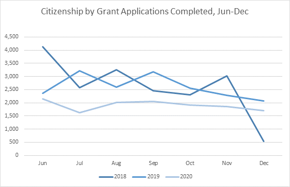 Appendix B: Number of Citizenship by Grant applications completed for the 2018-2020 calendar years Number of Citizenship by Grant applications completed, 2018-2020 2018 2019 2020 Jan