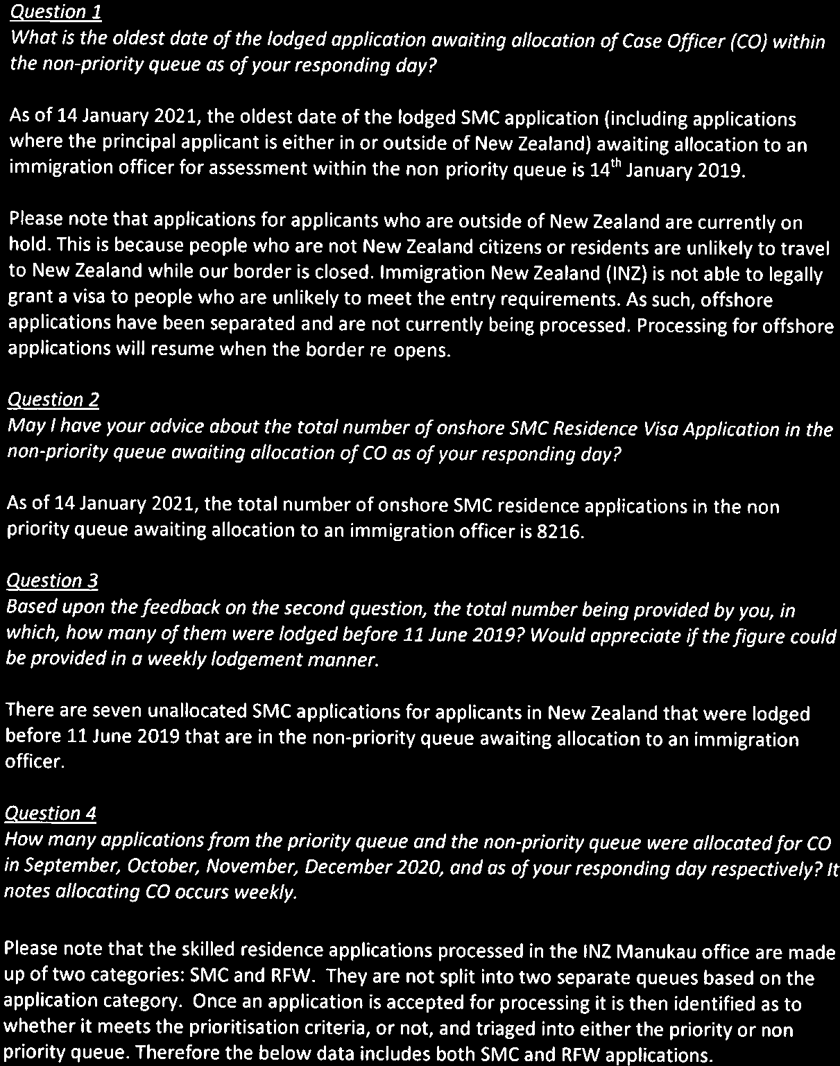 The total number of SMC visa in non-priority queue waiting for allocating case officer