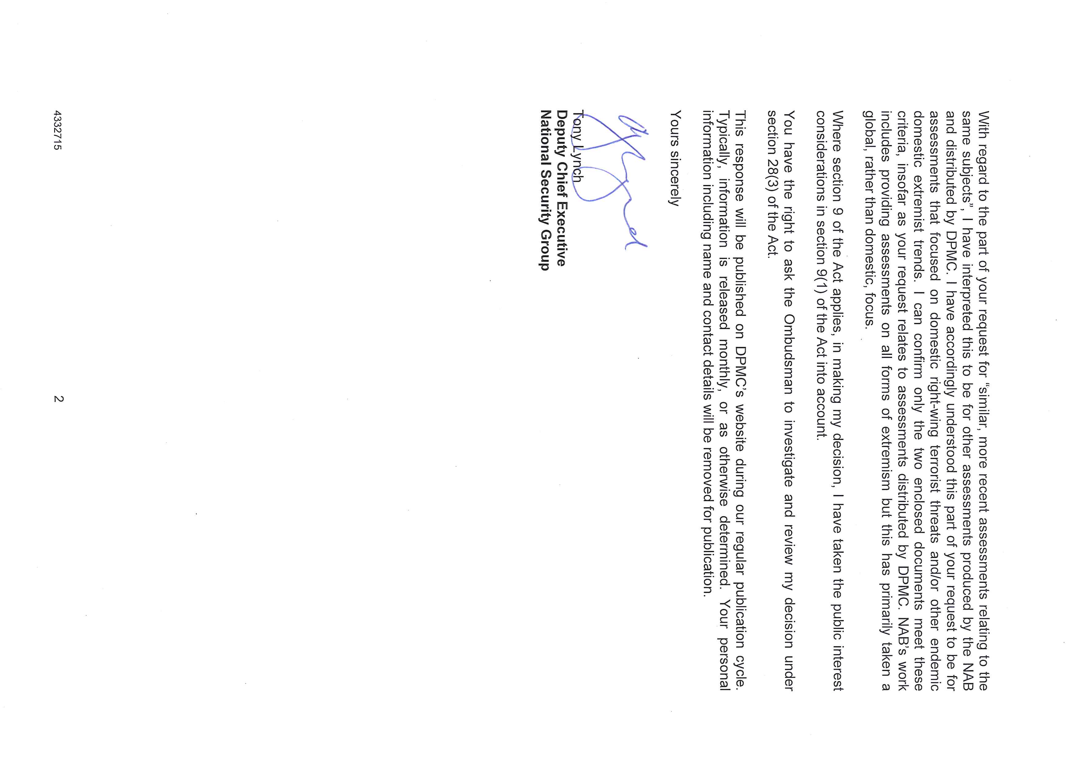 Two police assessments relating to right wing extremism