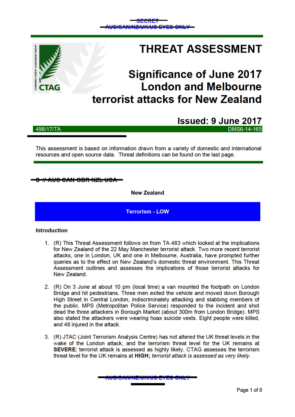 8. (S FVEY) One New Zealander is believed to have been injured in the London attack.