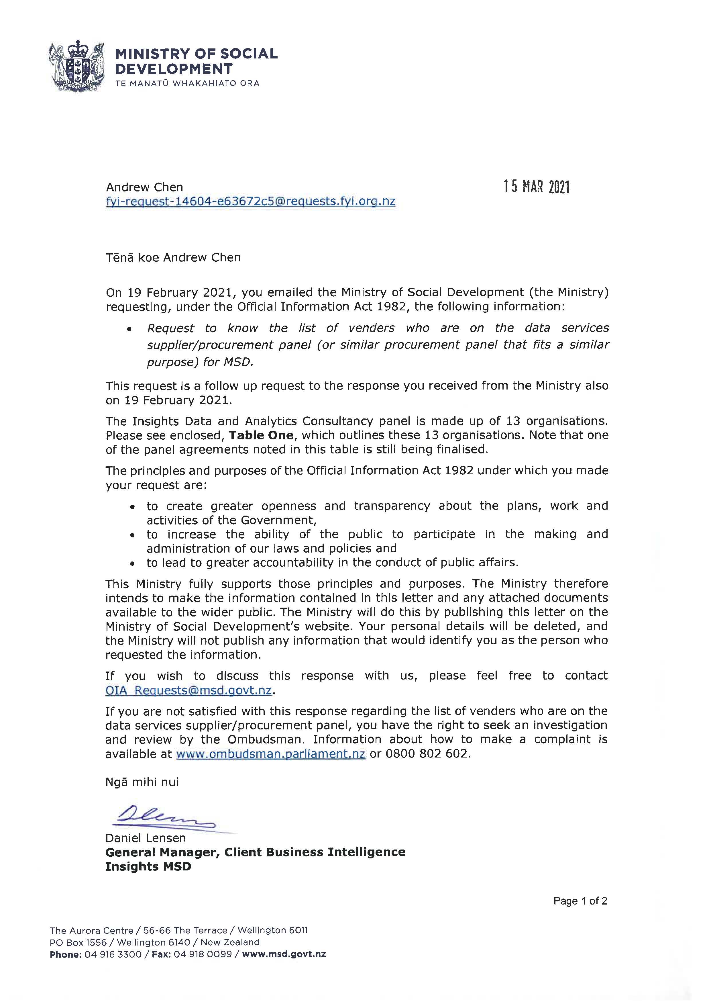 This is an HTML version of an attachment to the Official Information request '