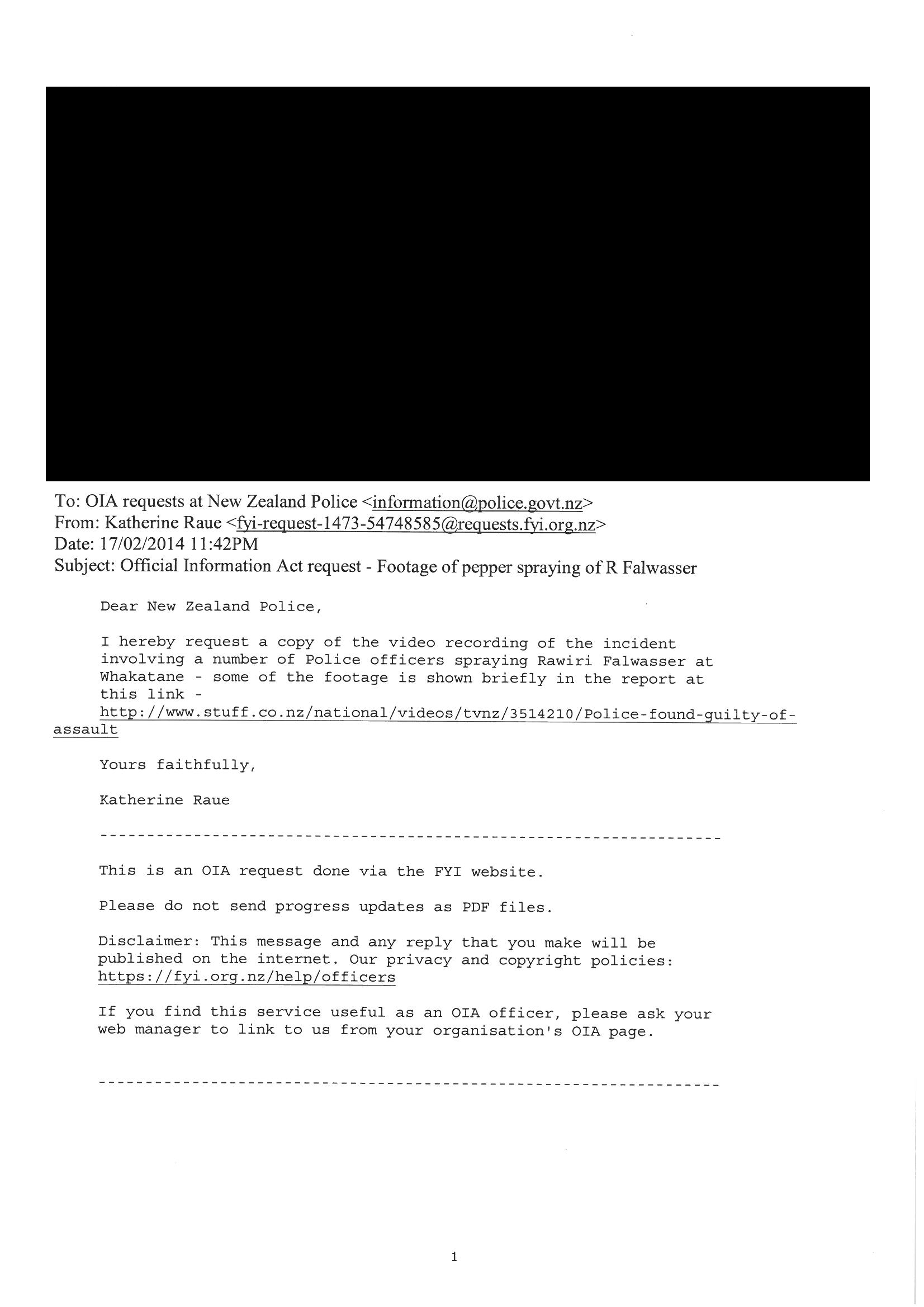 recording of the incident involving a number of Police Officers spraying Rawiri Falwasser at