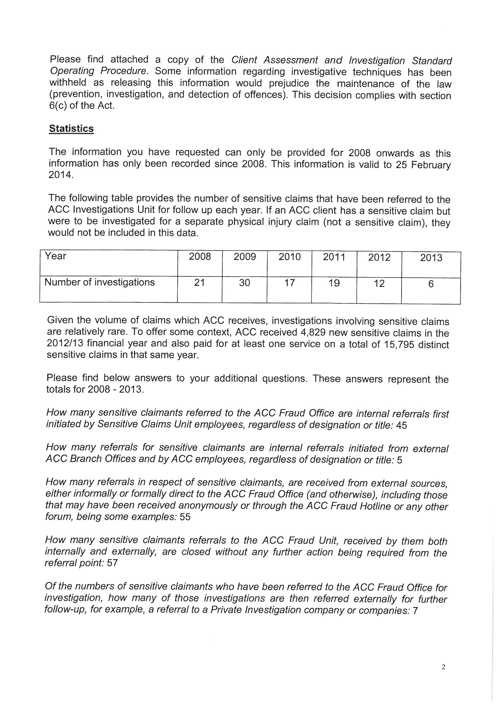 This is an HTML version of an attachment to the Official Information request 'Fraud investigations on Sensitive Claimants'.