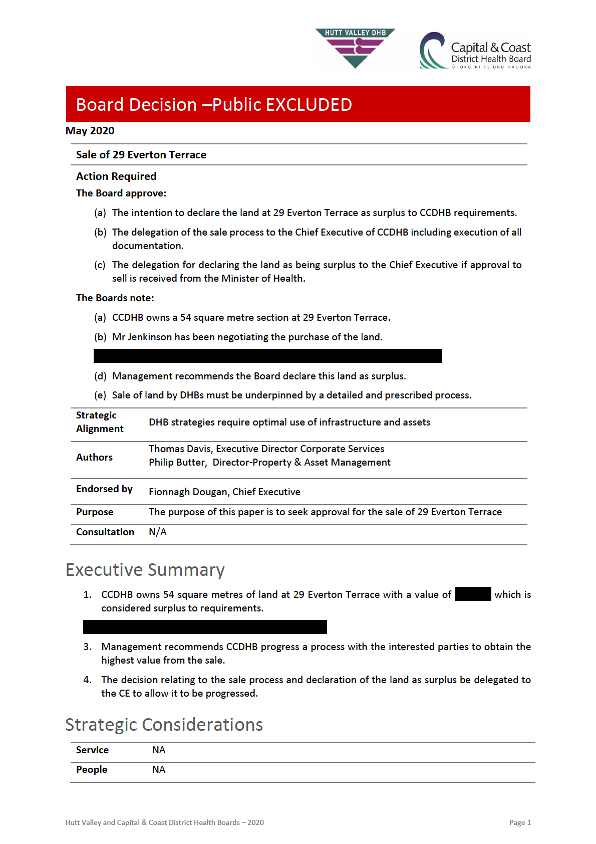 In late 2018, Mr Jenkinson again approached CCDHB to see whether this parcel of land was