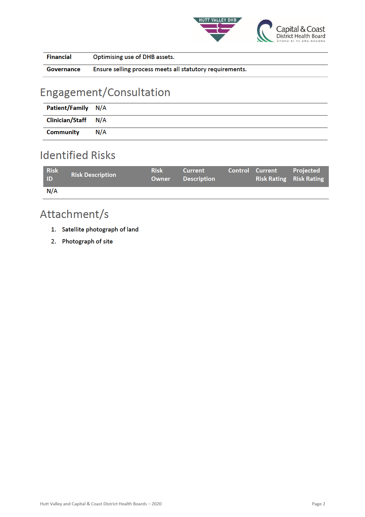 Hutt Valley and Capital & Coast District Health Boards – 2020