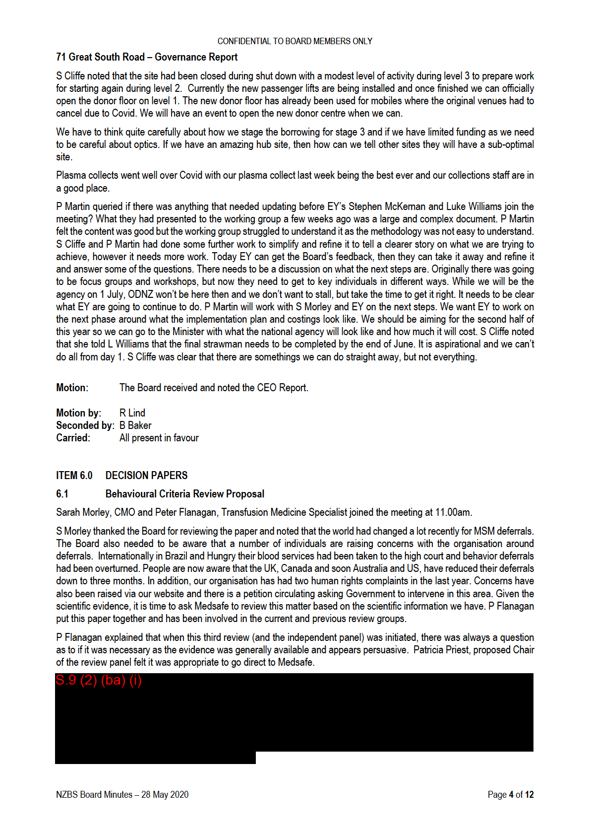 ITEM 12 Board Matters
