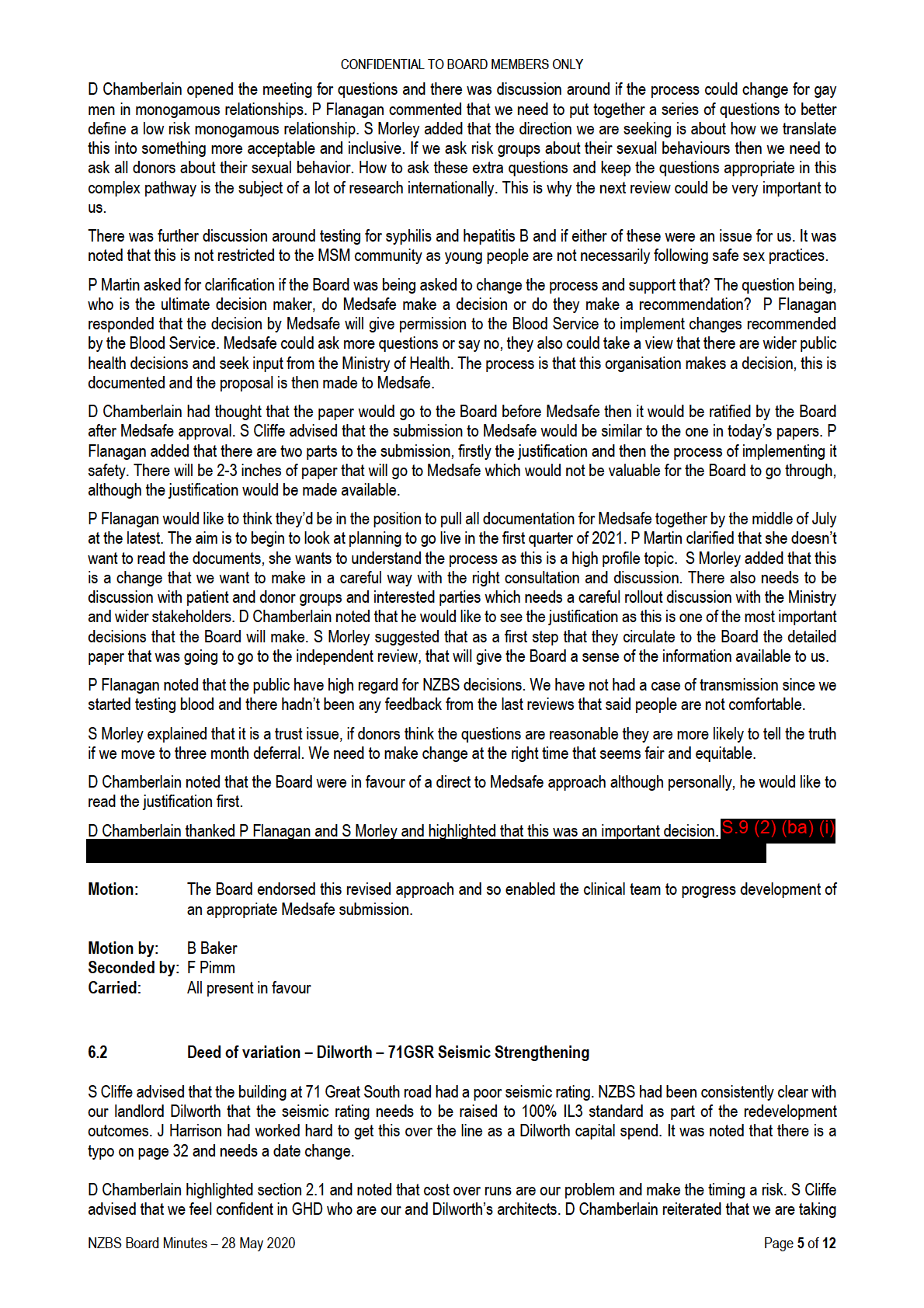 Chamberlain advised that this was more a risk around the process and had asked J Harrison to report back to the Board