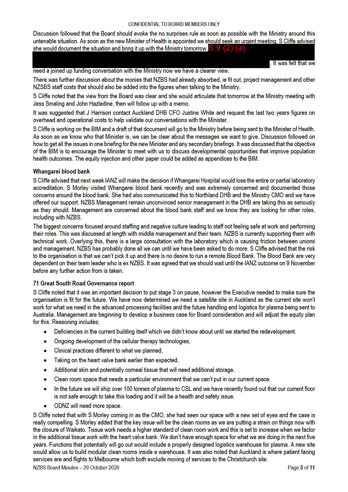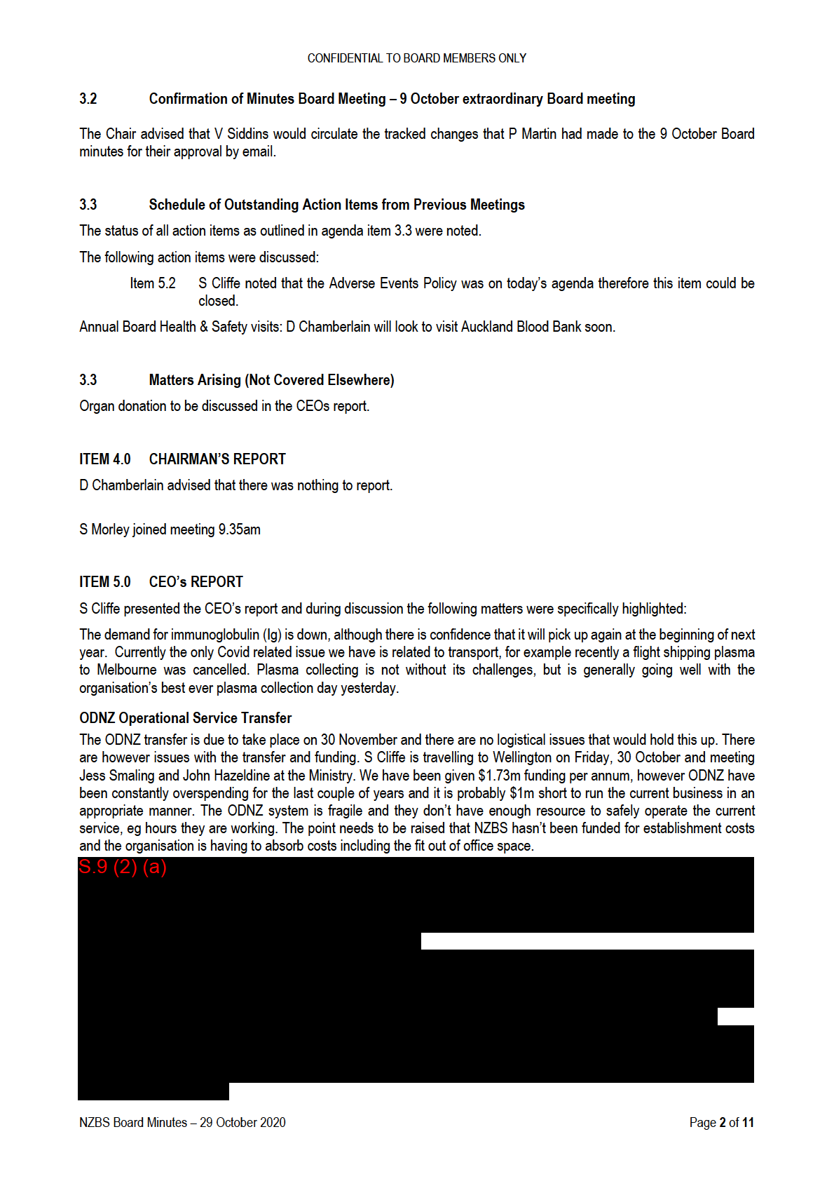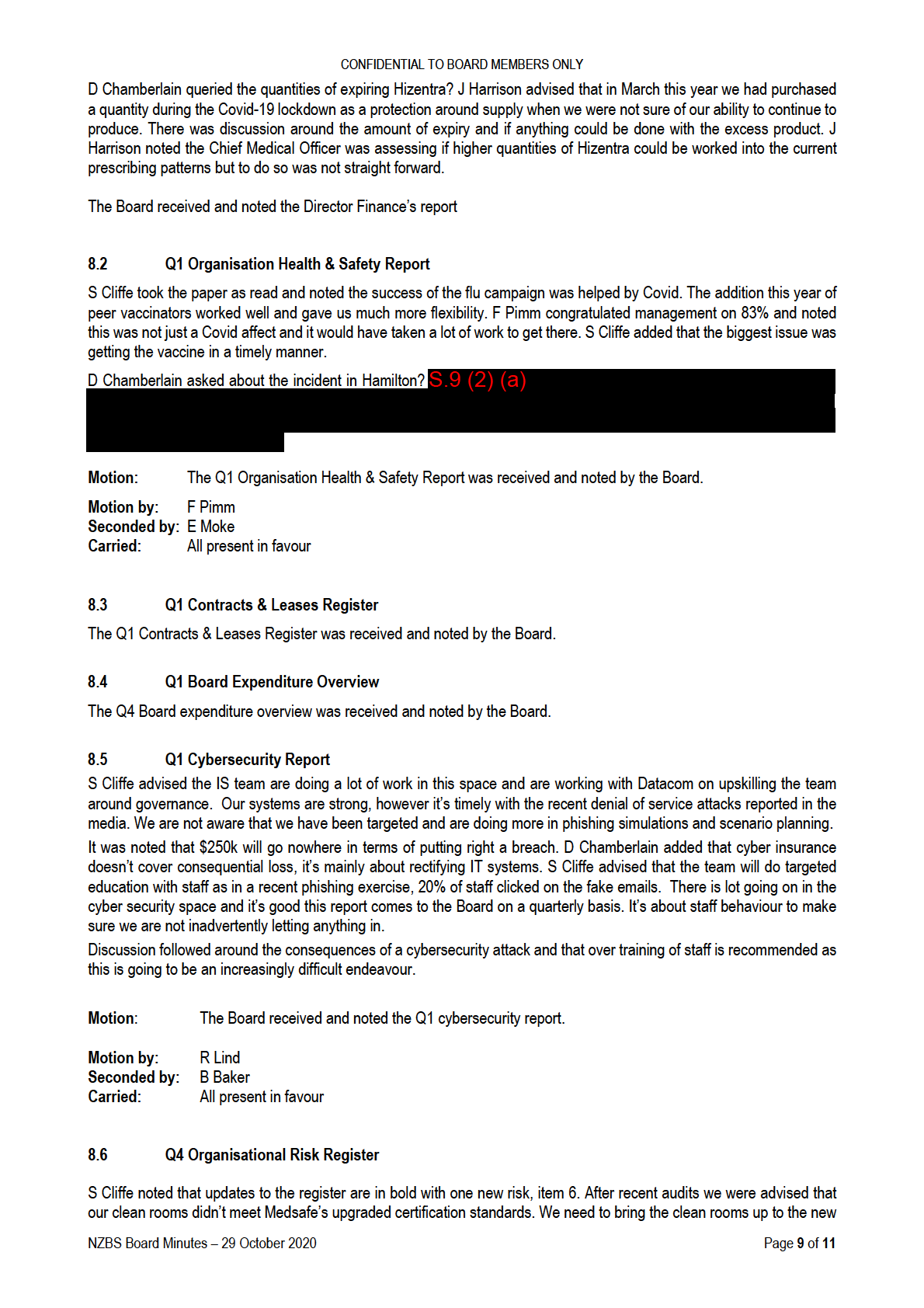 The let er received from the Minister Henare dated 2 September was noted by the Board. S Cliffe added that this hasn’t
