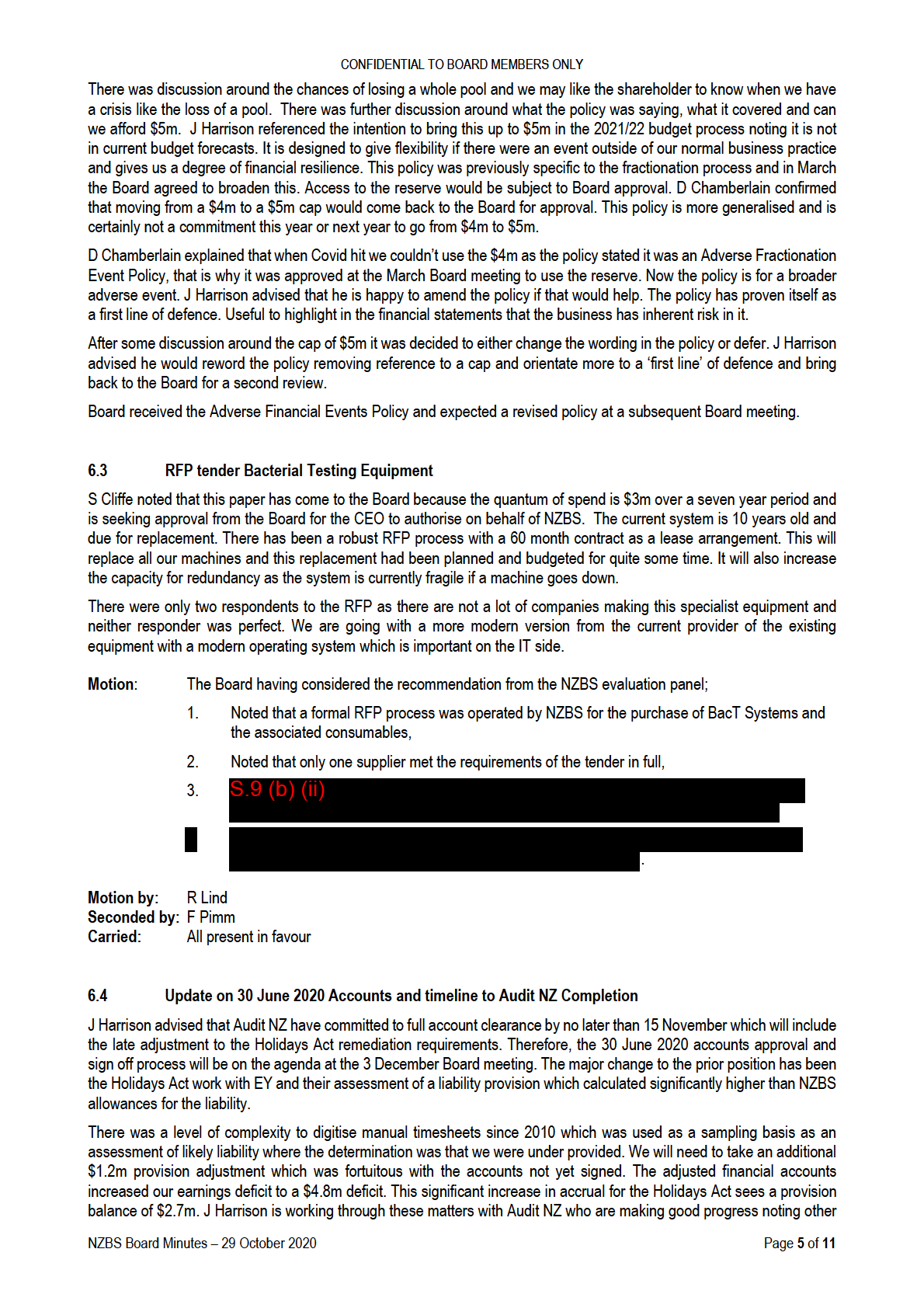 The NZBS Board formal y reviewed the draft Policy on Delegated Authorities and fol owing discussion