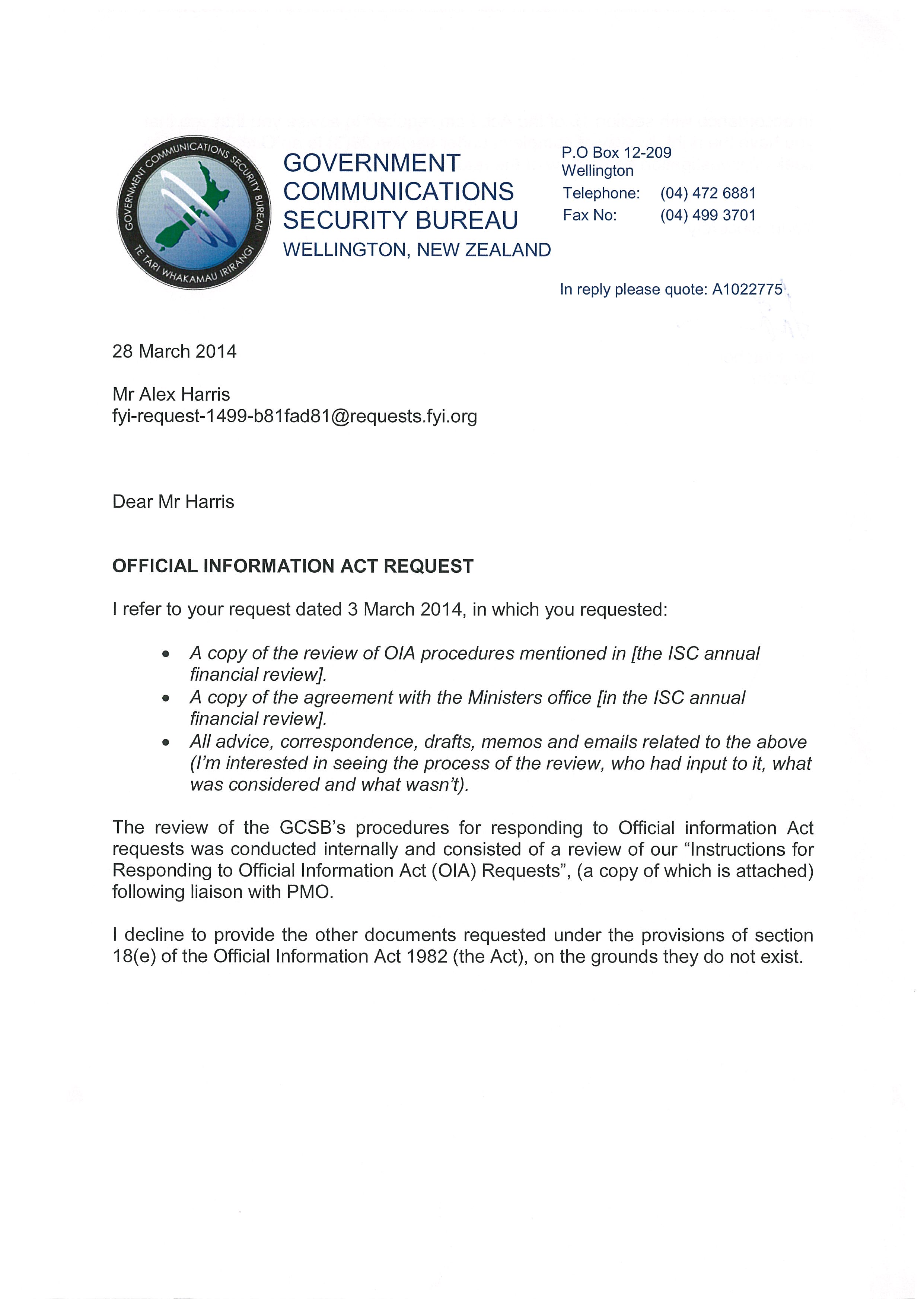 Review of OIA processes