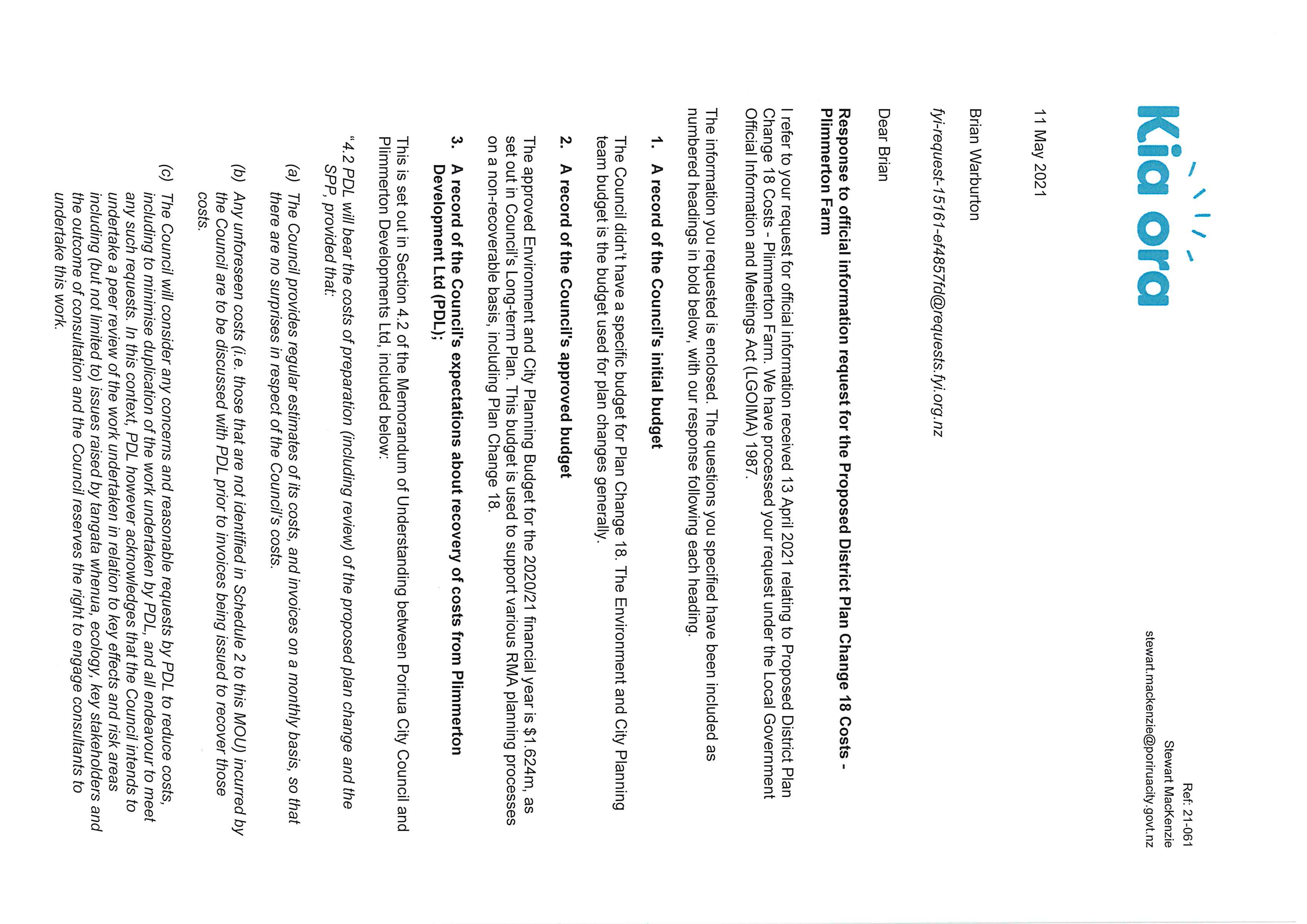 Proposed District Plan Change 18 Costs - Plimmerton Farm, Porirua