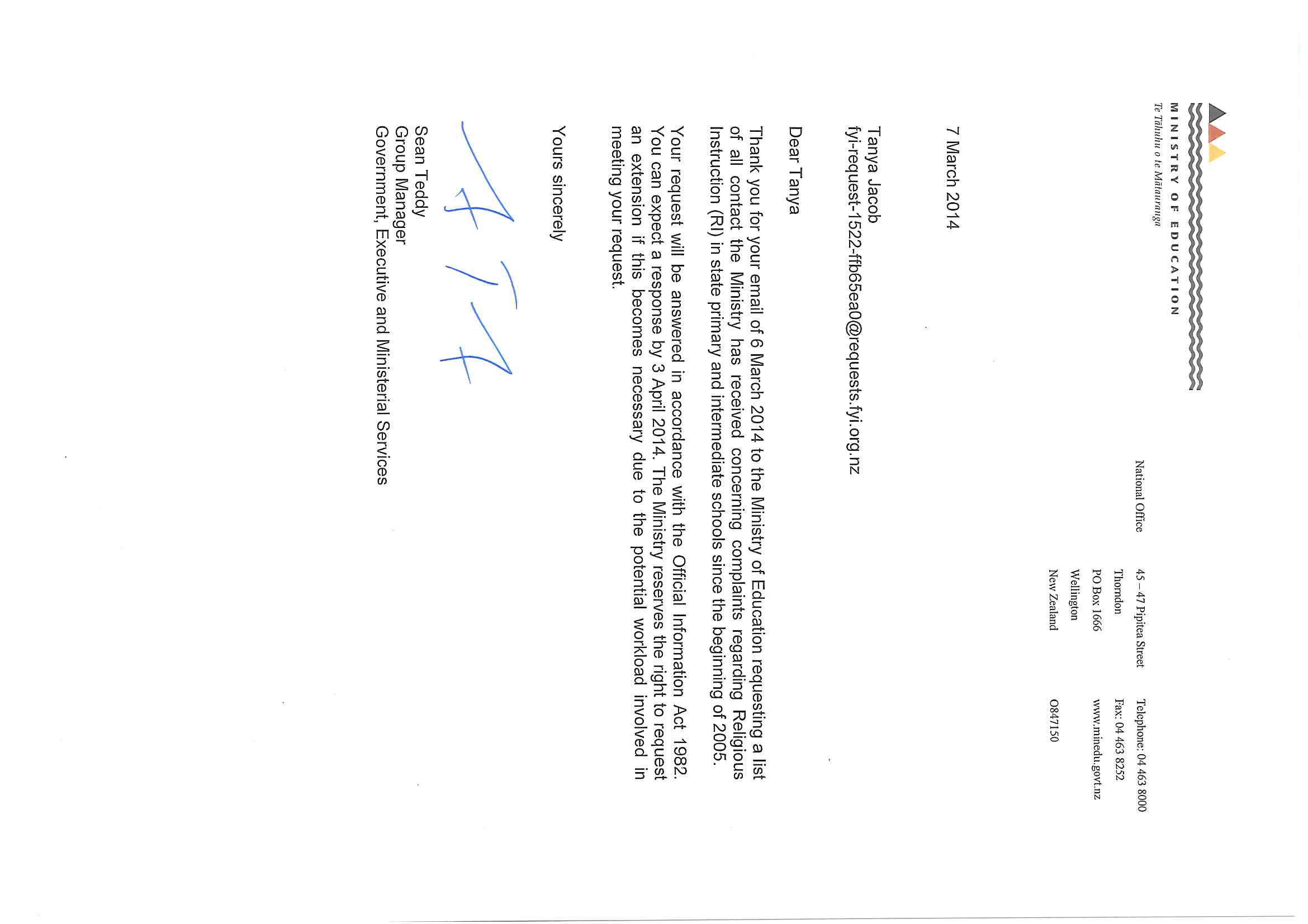 Religious Instruction: complaints, concerns, internal memos and reports.
