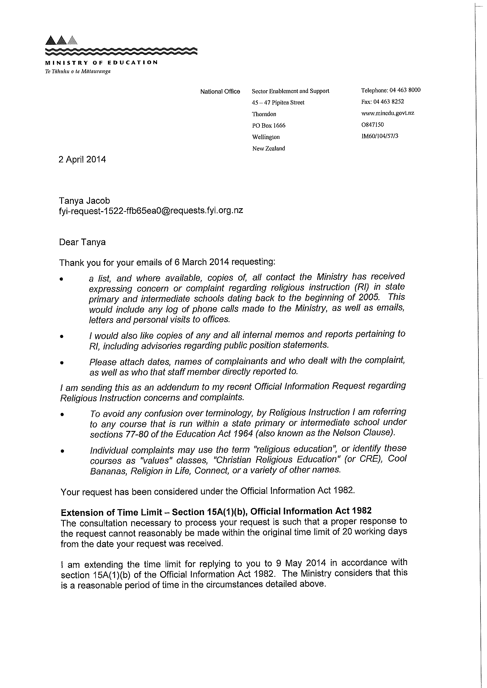 Religious Instruction: complaints, concerns, internal memos and reports.