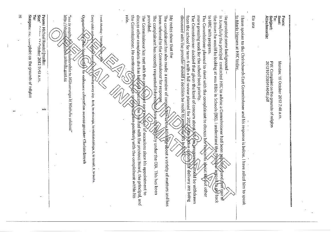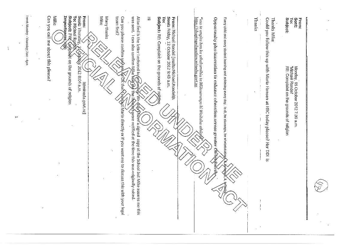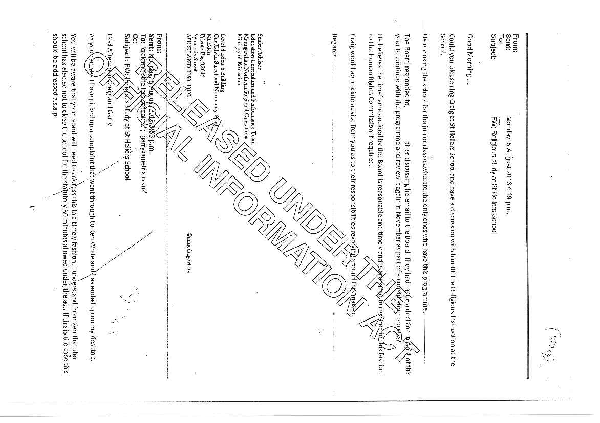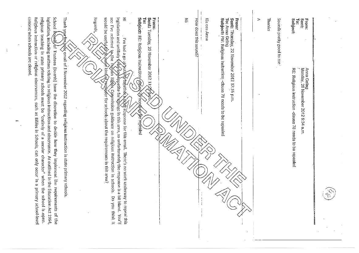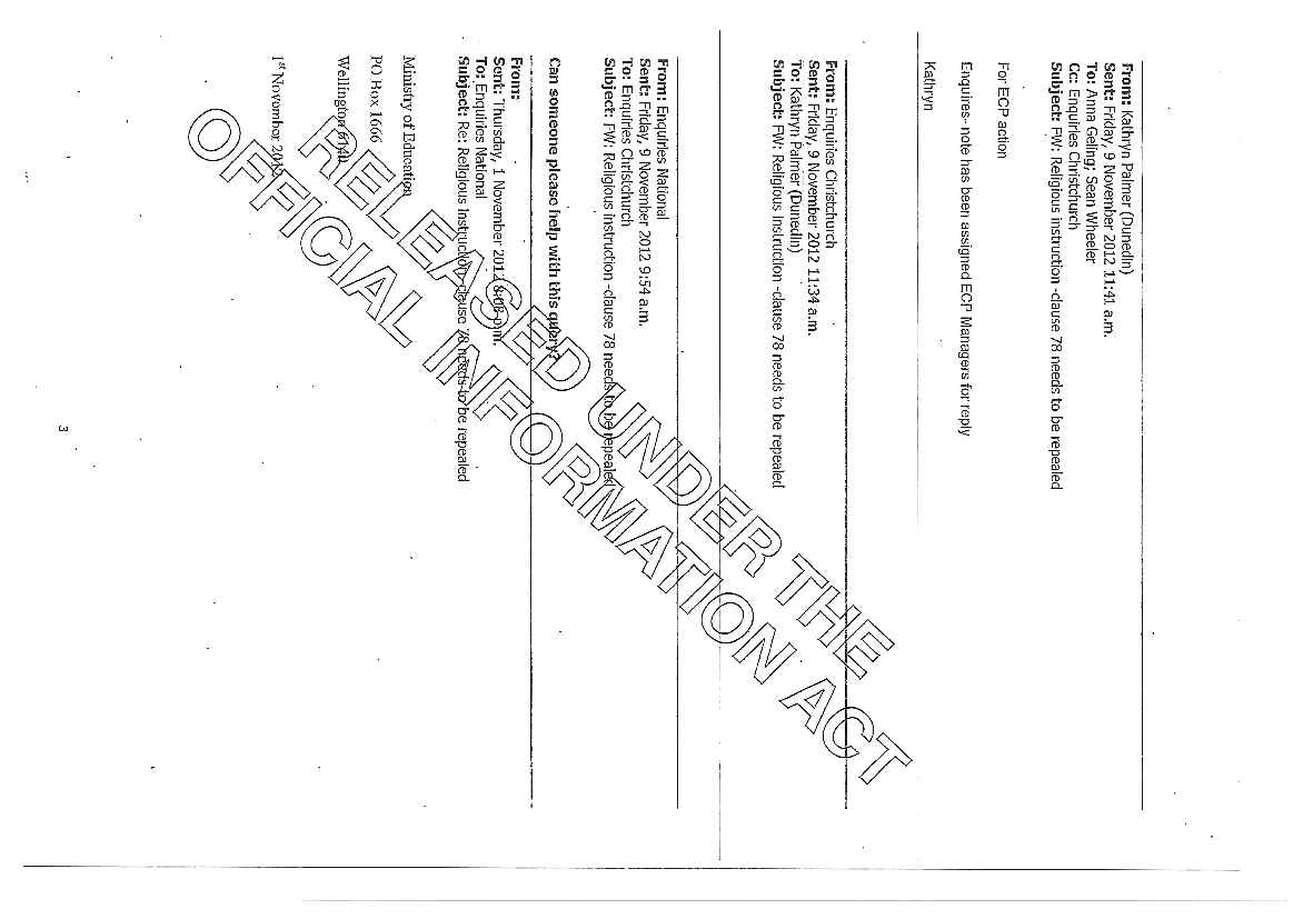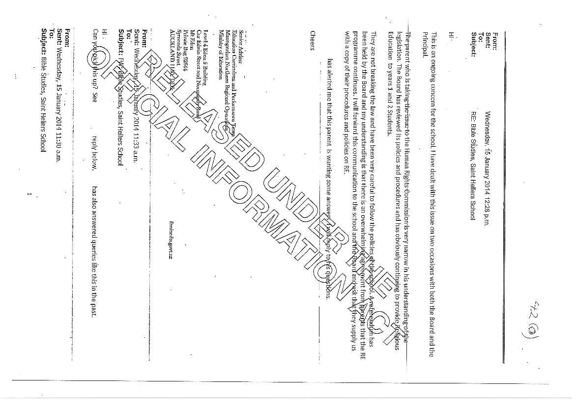 Religious Instruction: complaints, concerns, internal memos and reports.