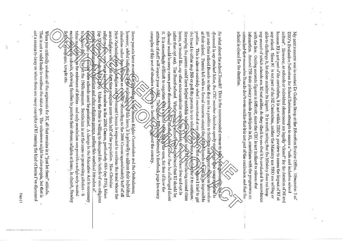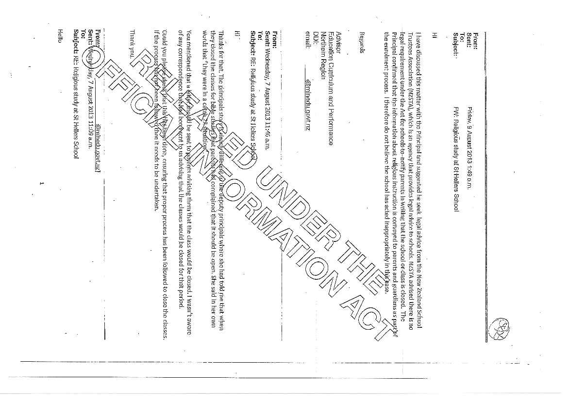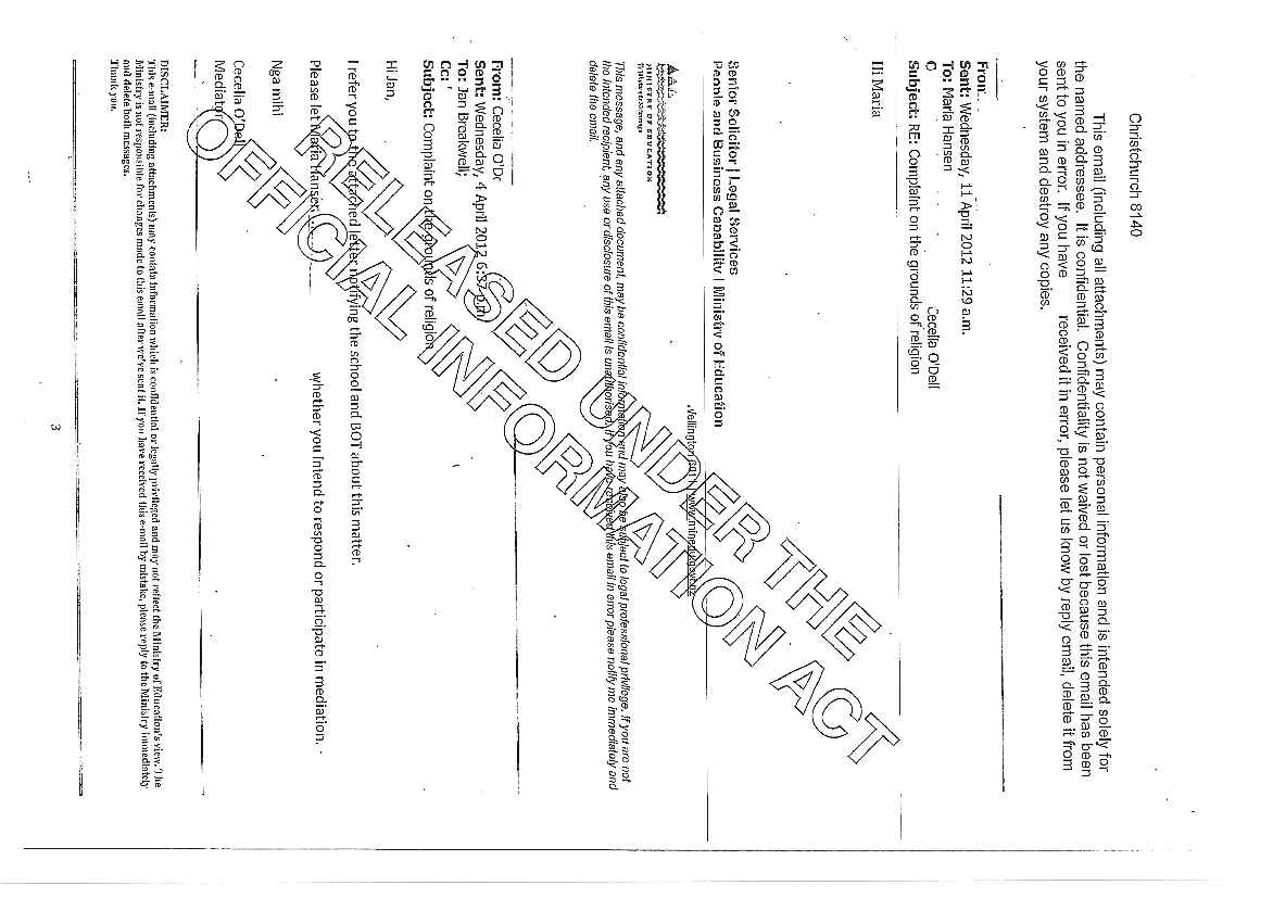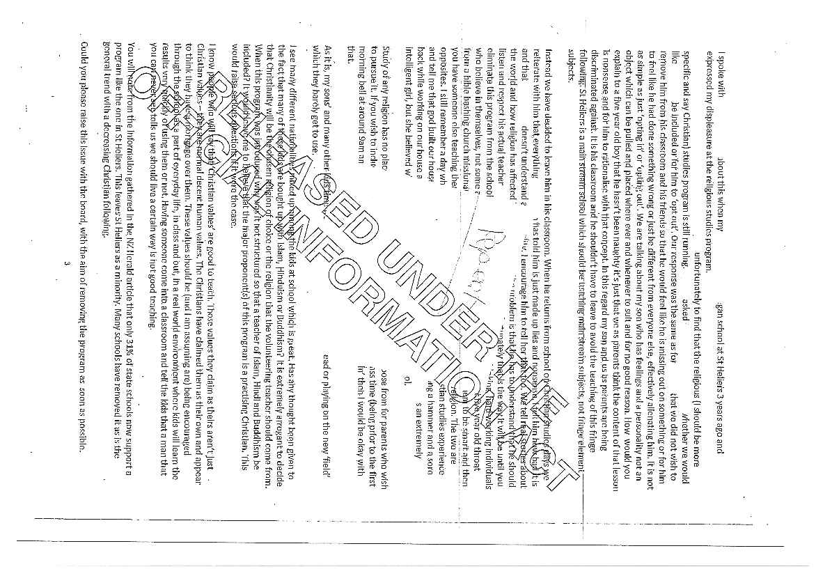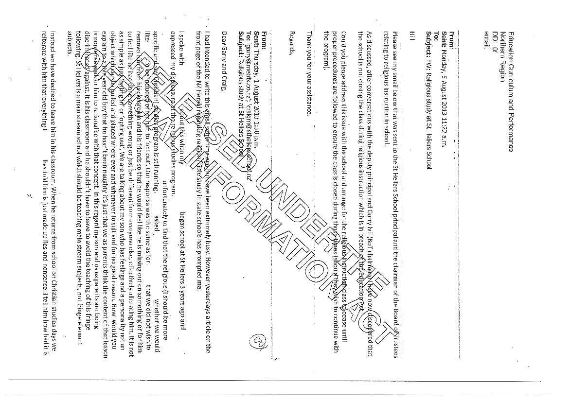 Religious Instruction: complaints, concerns, internal memos and reports.