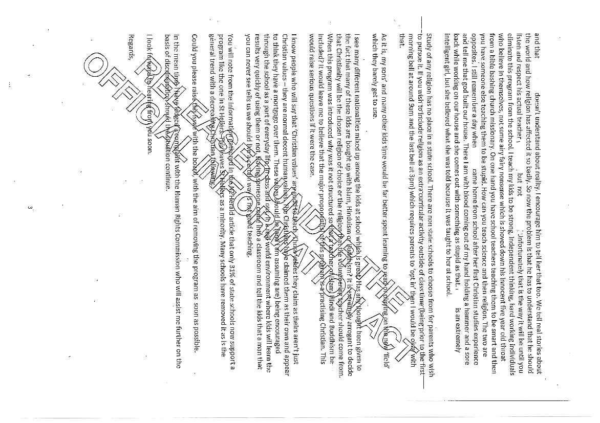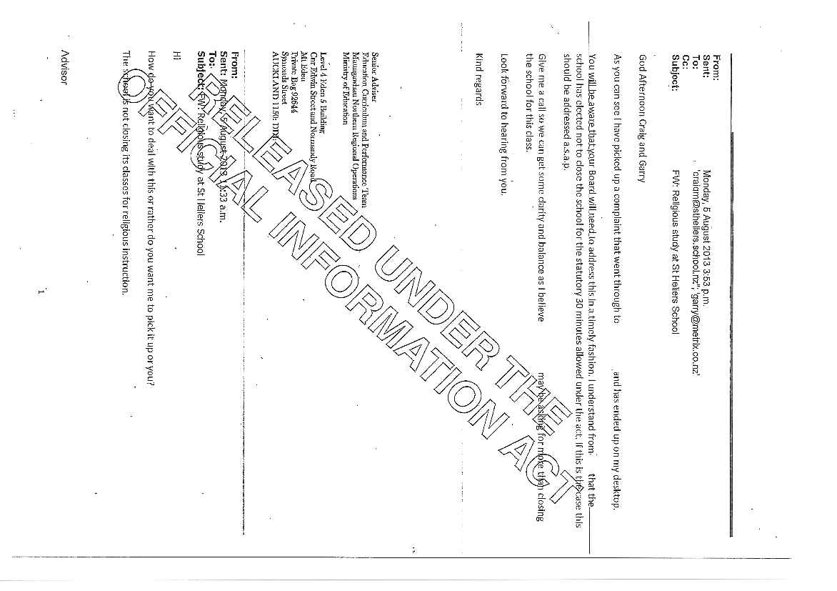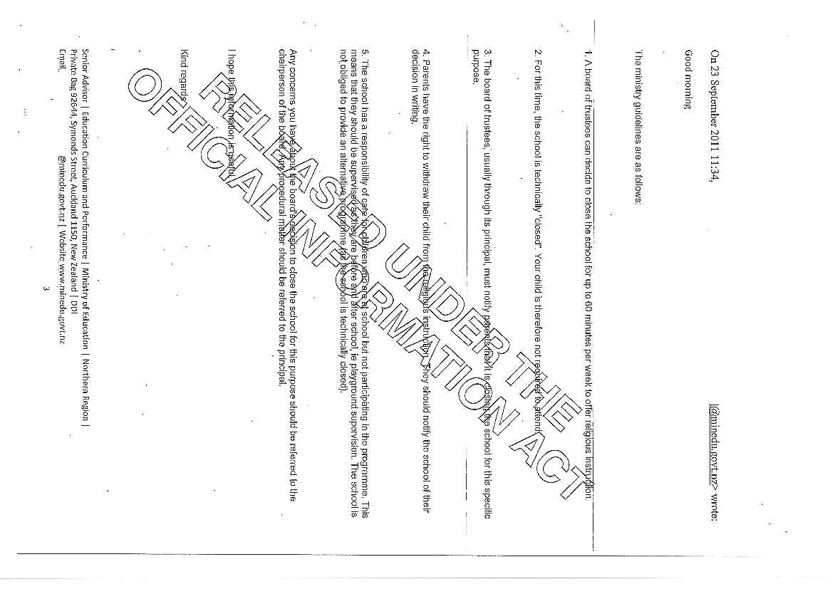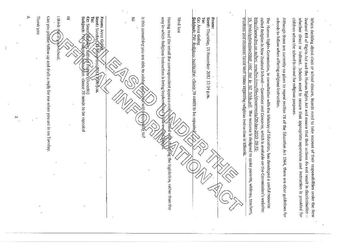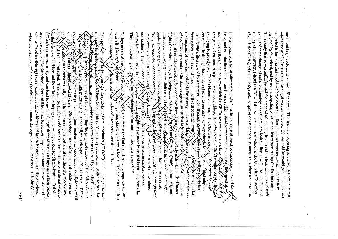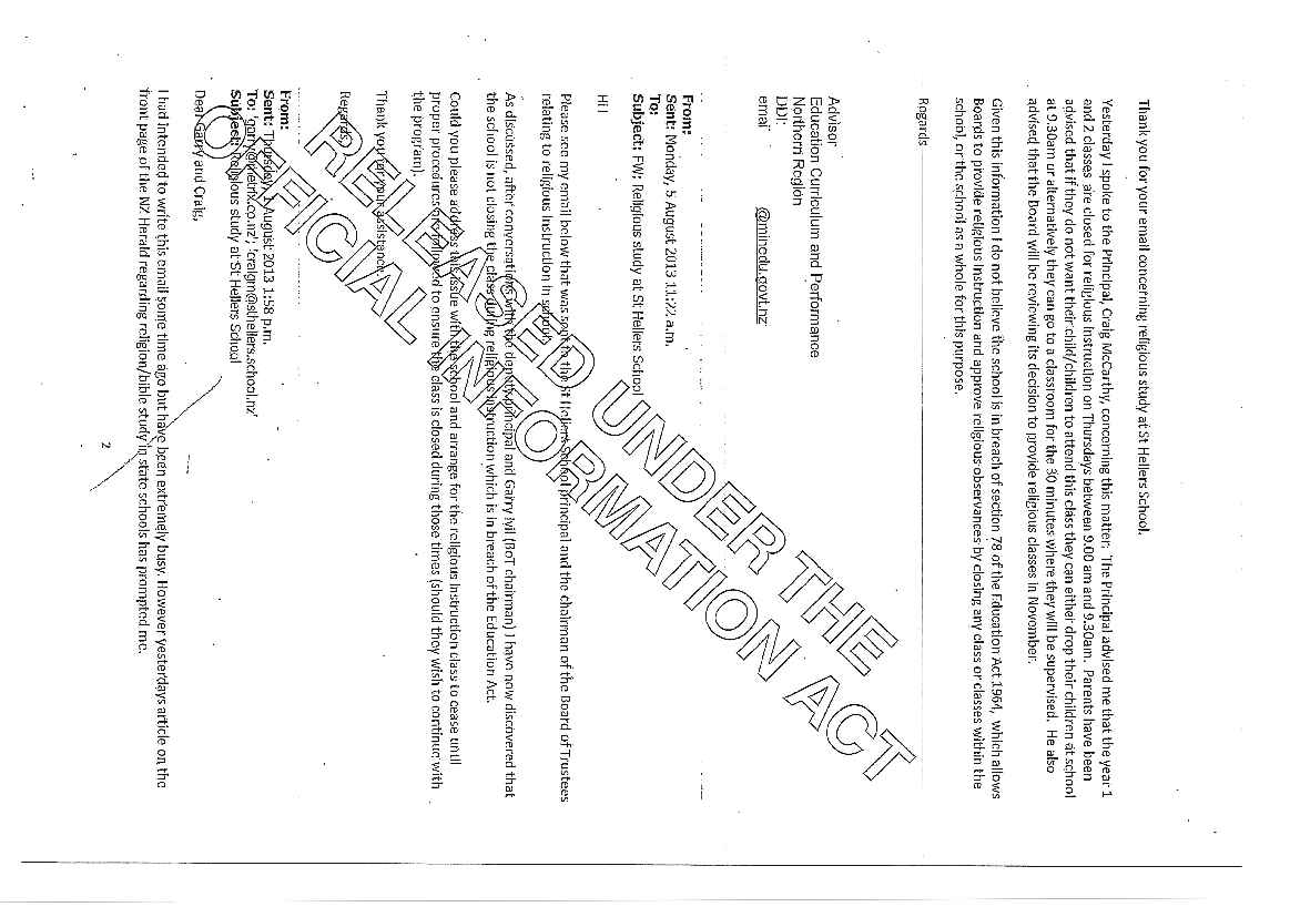 Religious Instruction: complaints, concerns, internal memos and reports.