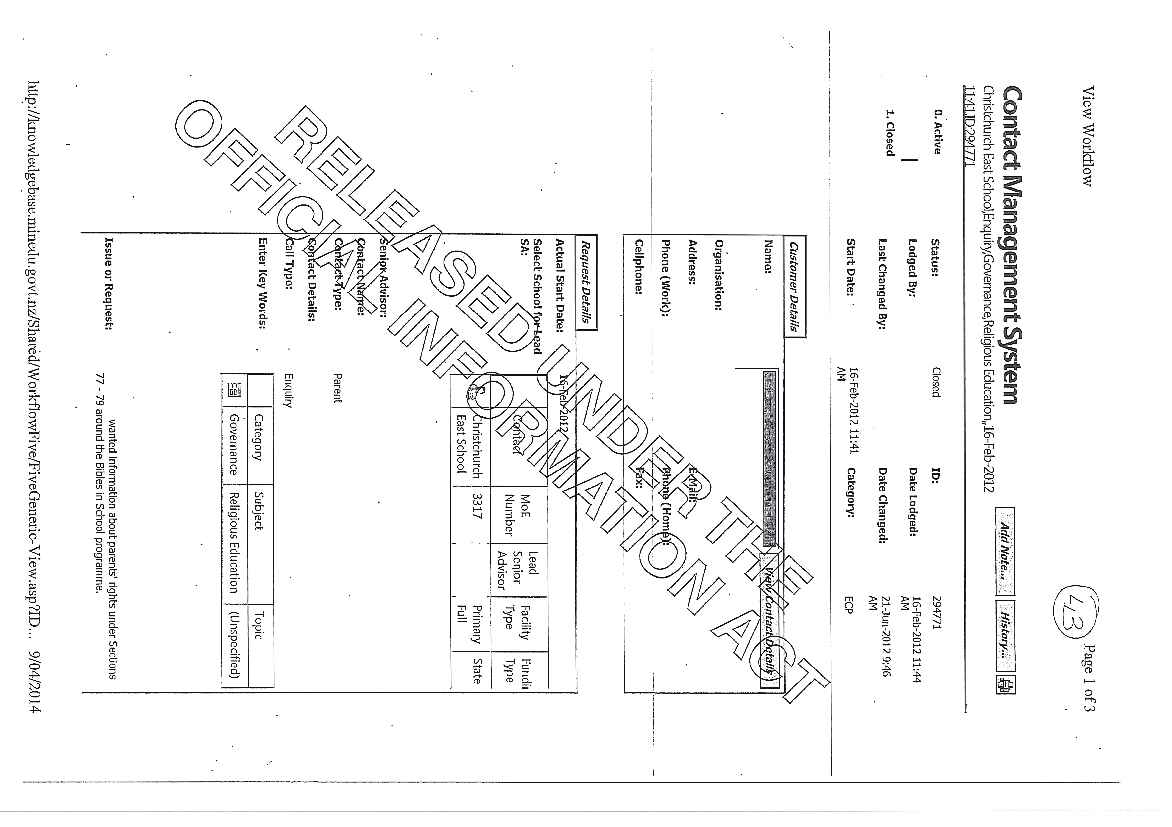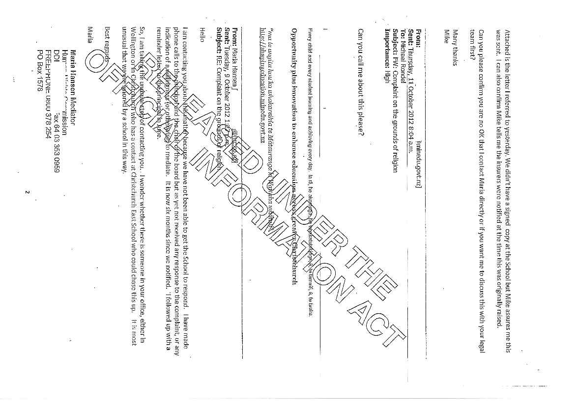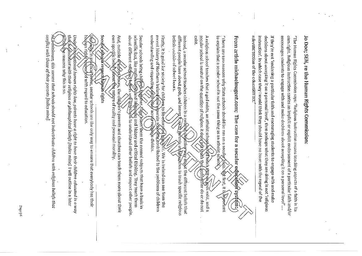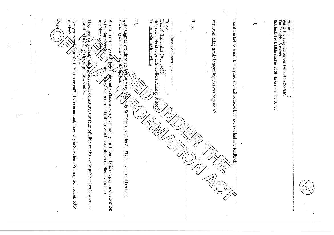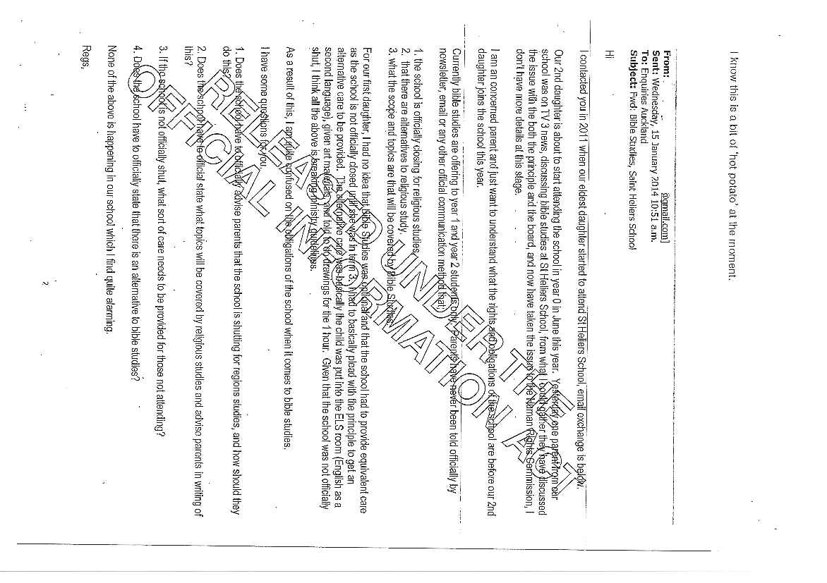Religious Instruction: complaints, concerns, internal memos and reports.
