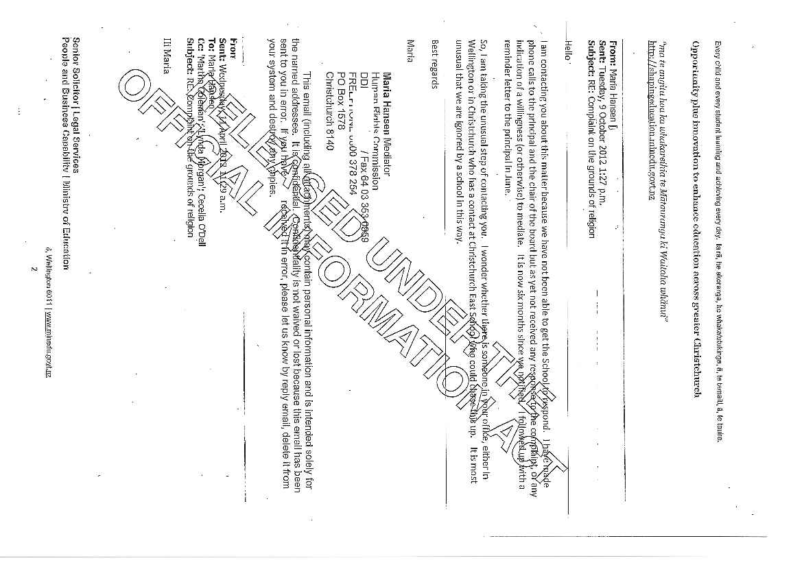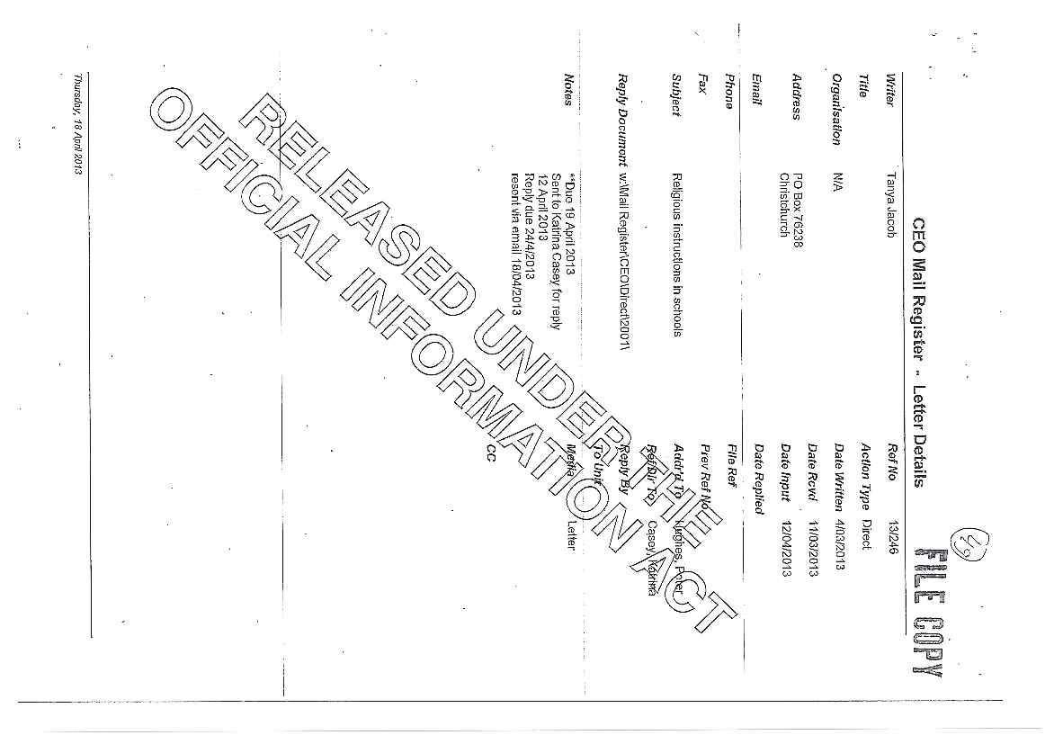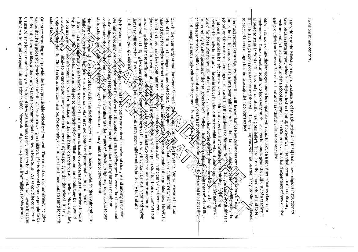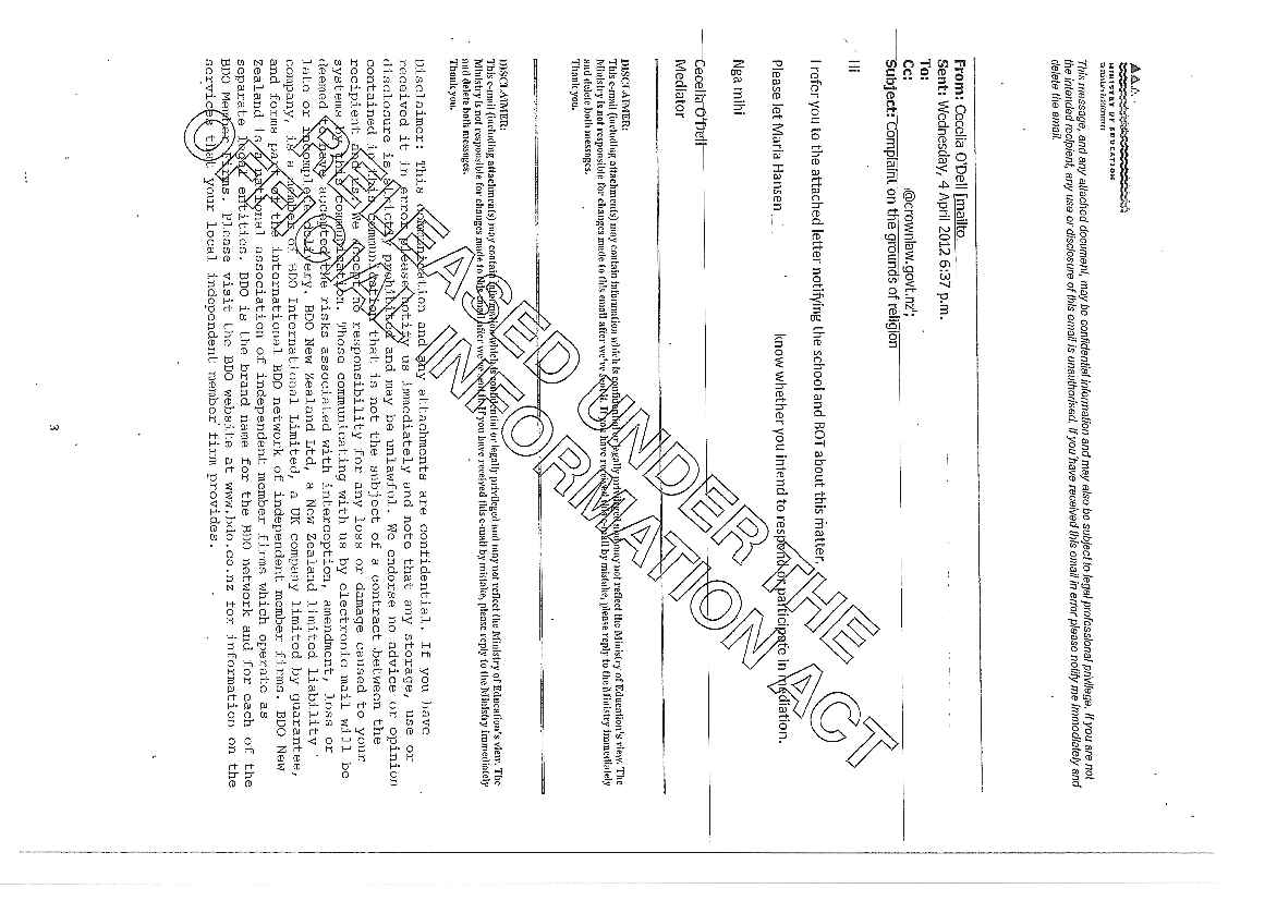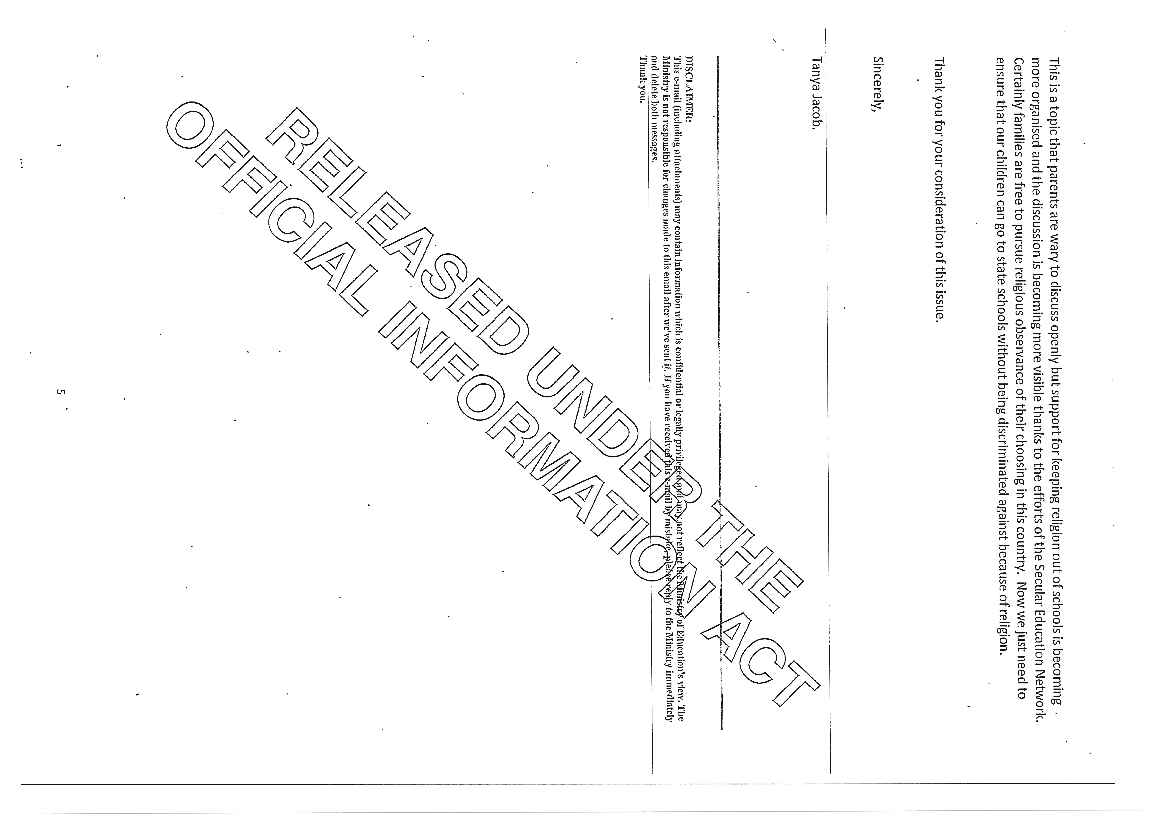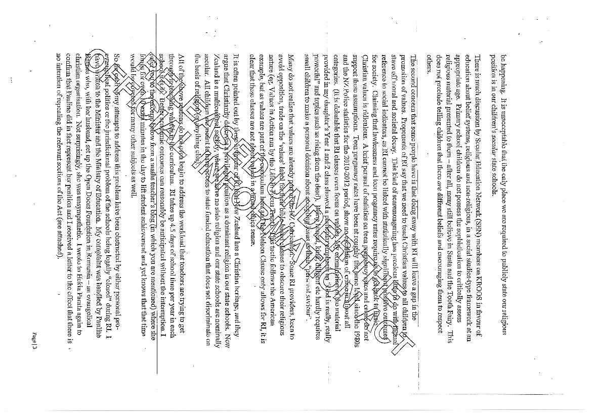 Religious Instruction: complaints, concerns, internal memos and reports.