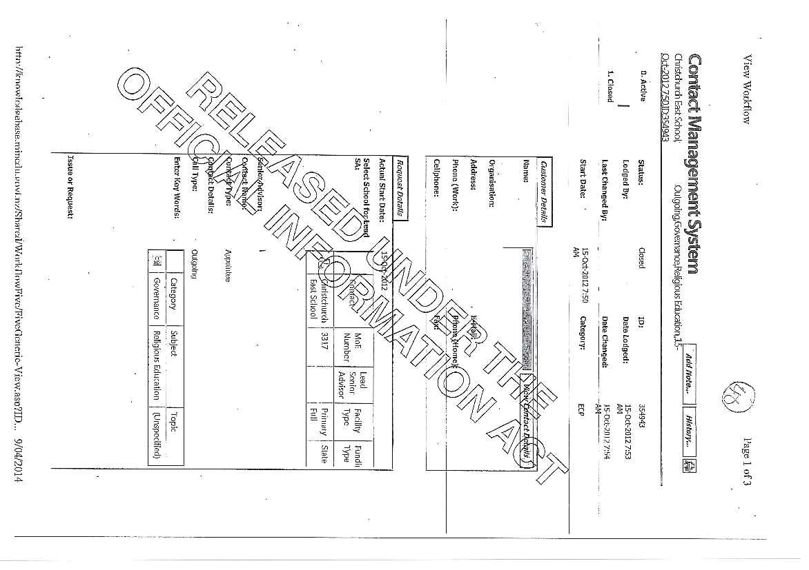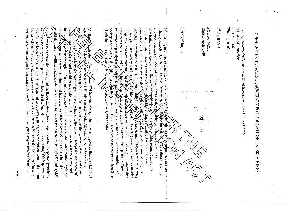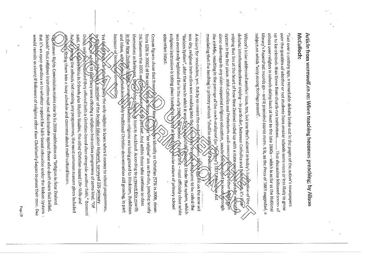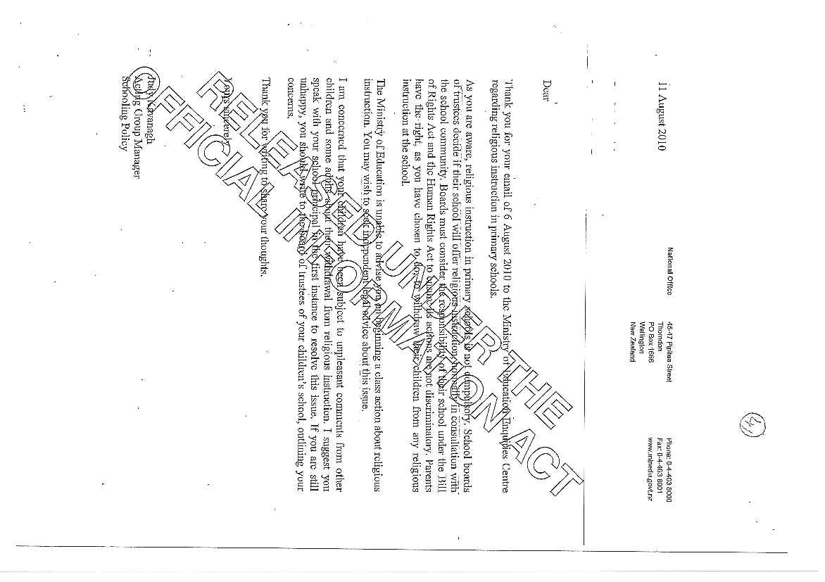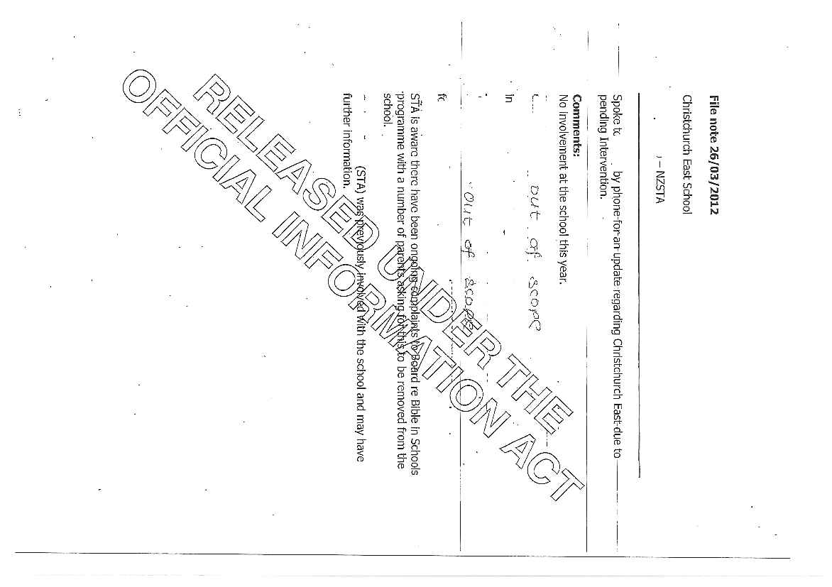 Religious Instruction: complaints, concerns, internal memos and reports.