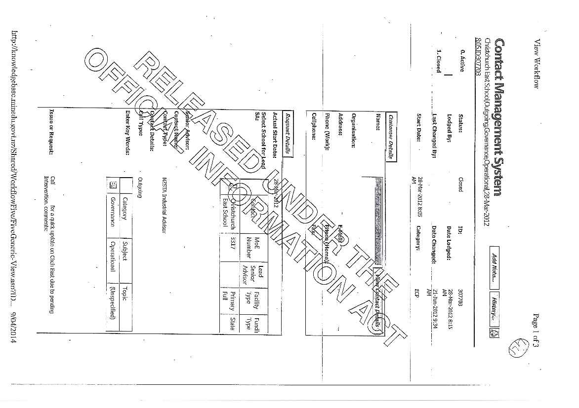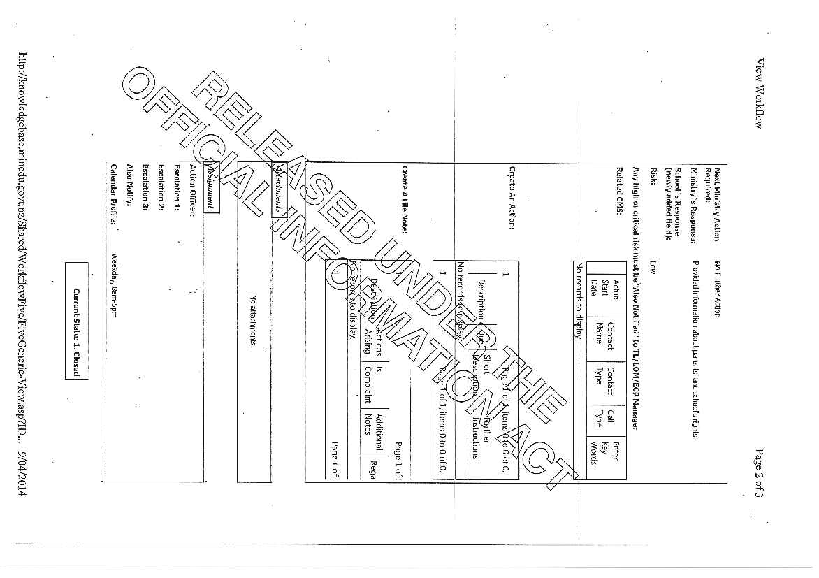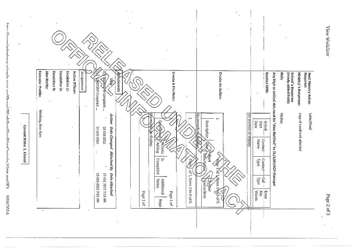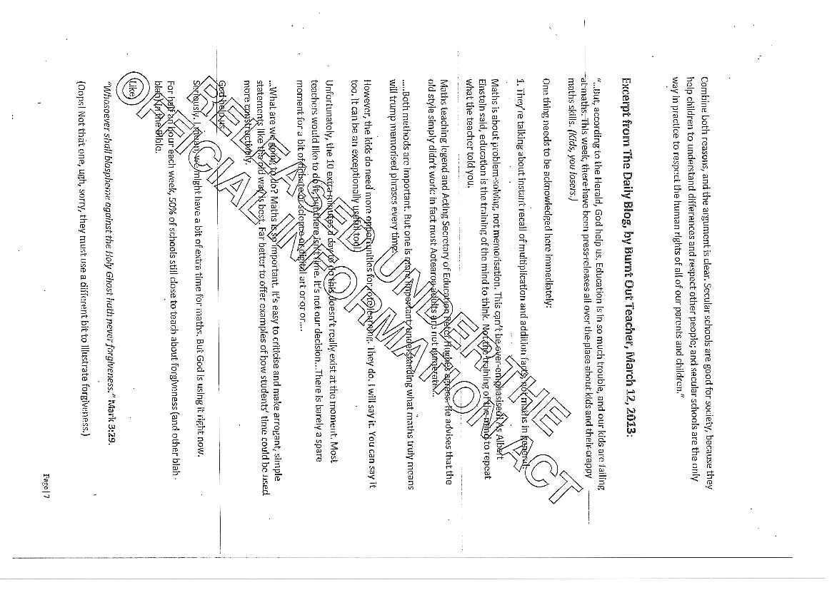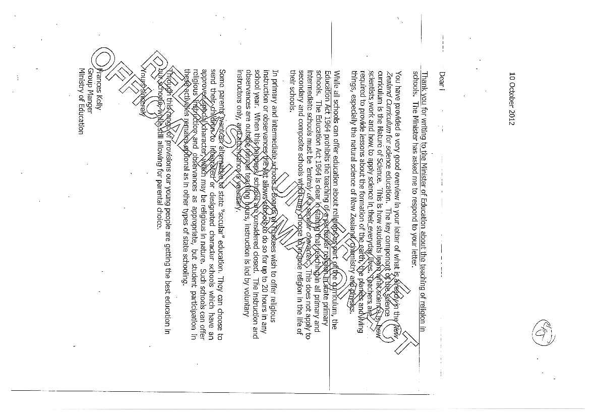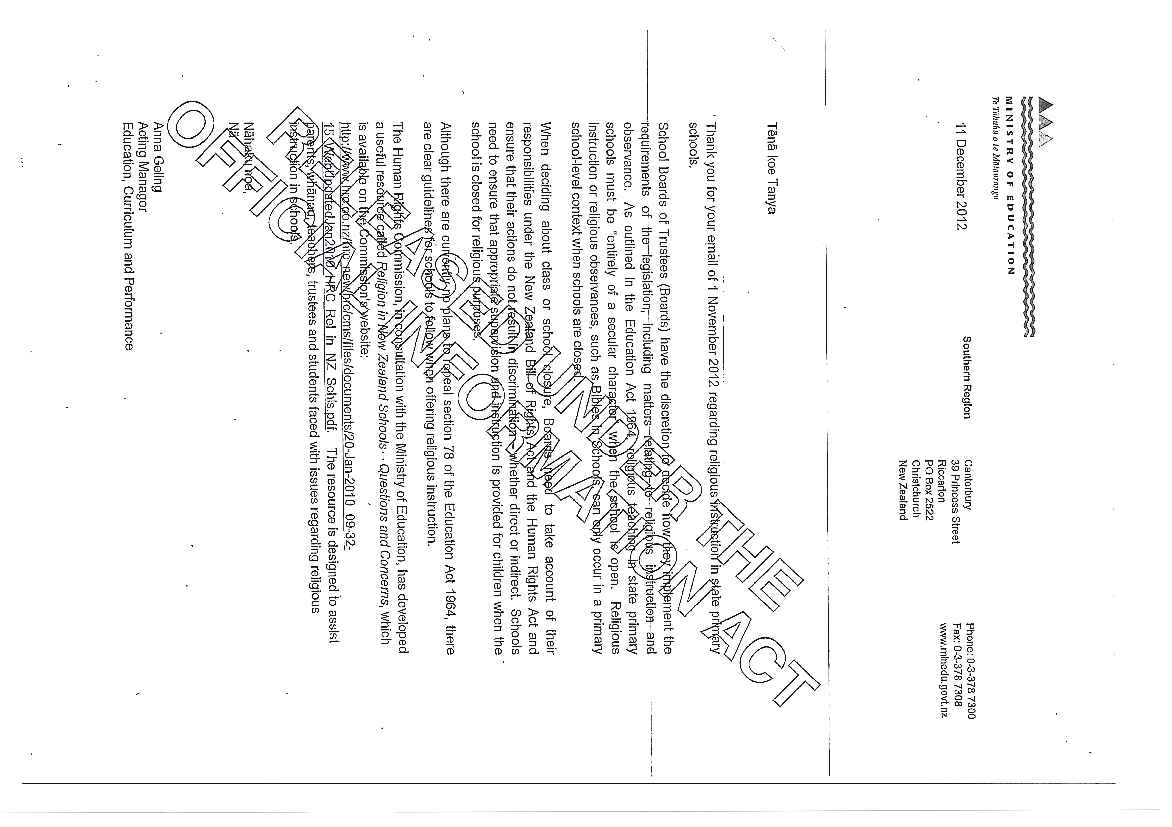 Religious Instruction: complaints, concerns, internal memos and reports.